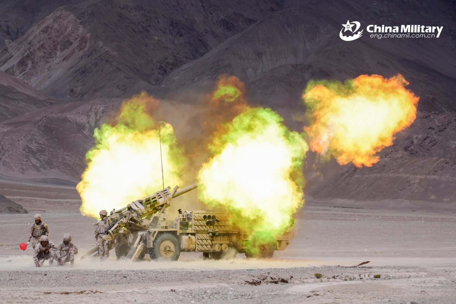 Soldiers assigned to a regiment under the Chinese PLA Xinjiang Military Command fire a PCL-161 122mm truck-mounted howitzer at the mock targets during a live-fire training exercise on October 15, 2025. (eng.chinamil.com.cn/Photo by Huang Jincai)