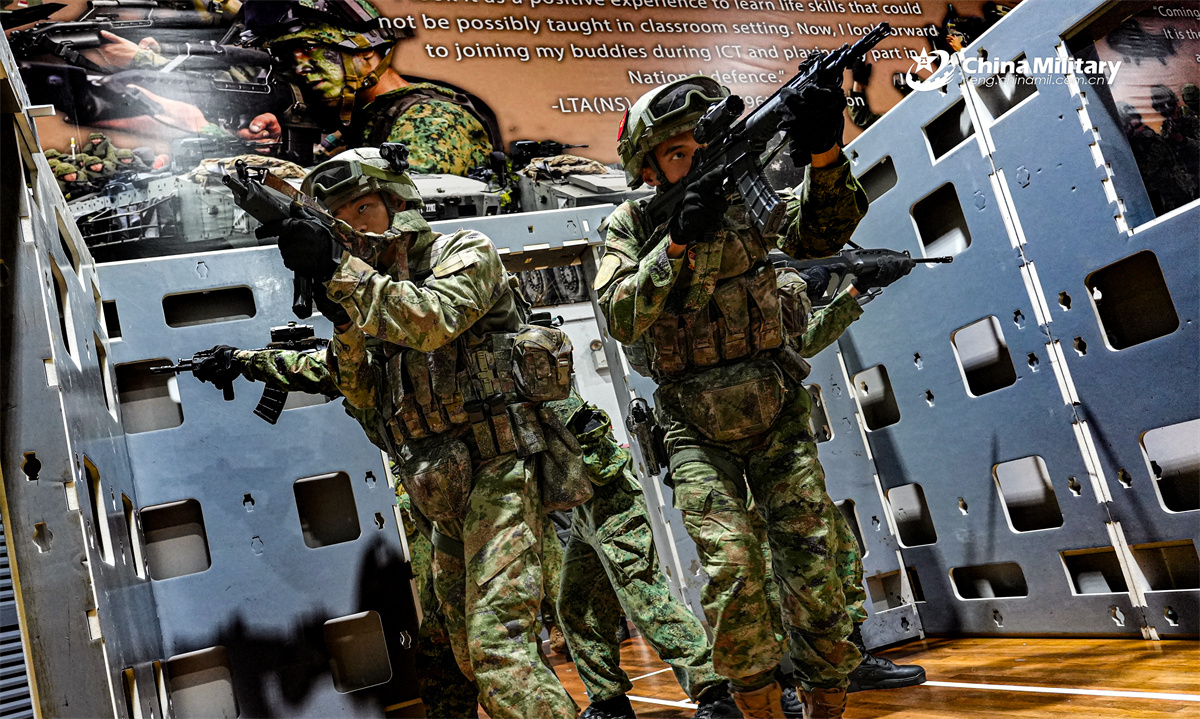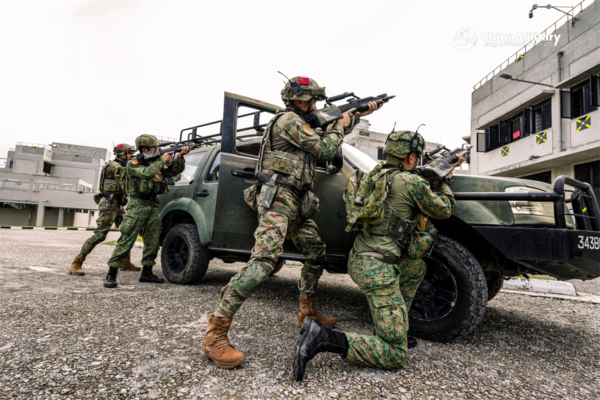 Participating troops of the China-Singapore joint army training Exercise Cooperation-2025 conducted field drills focused on urban counter-terrorism operations.