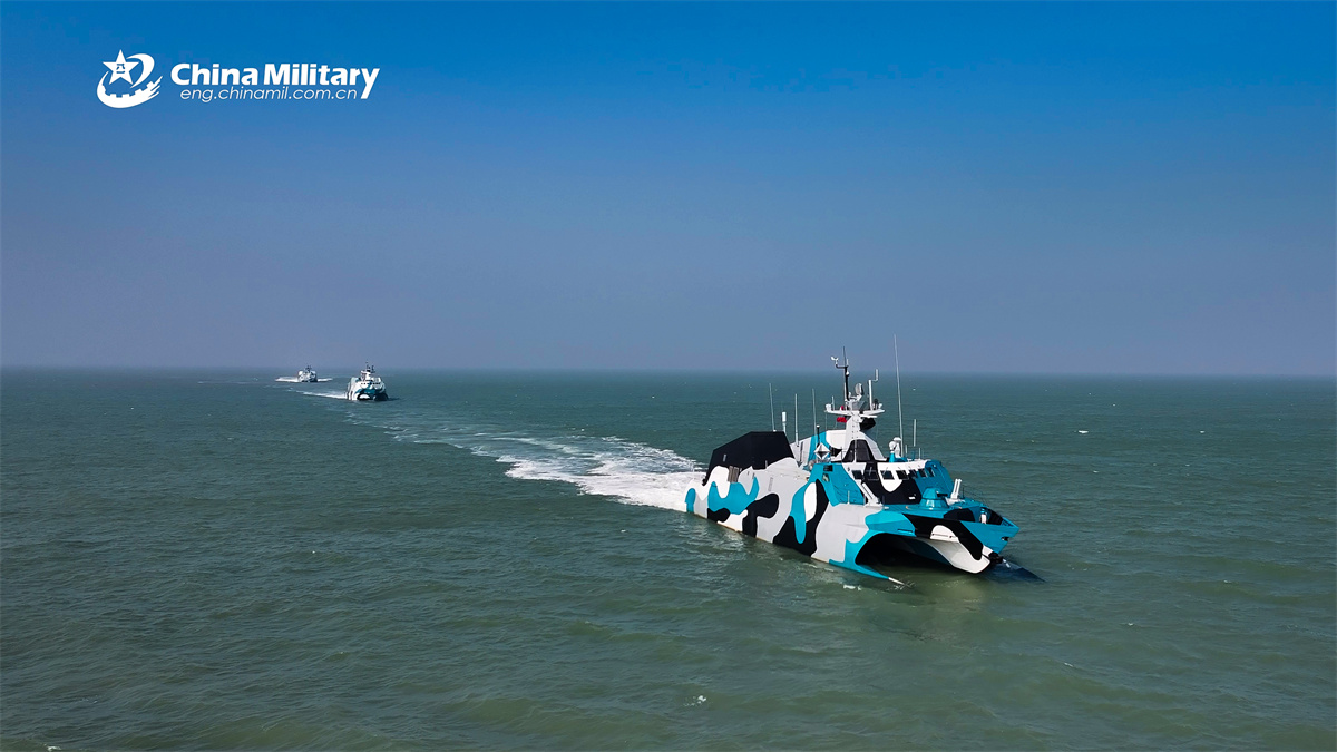 Type 022 missile boats attached to the Chinese PLA Southern Theater Command steam in formation during a multi-subject maritime training exercise. (eng.chinamil.com.cn/Photo by Wan Songtao)