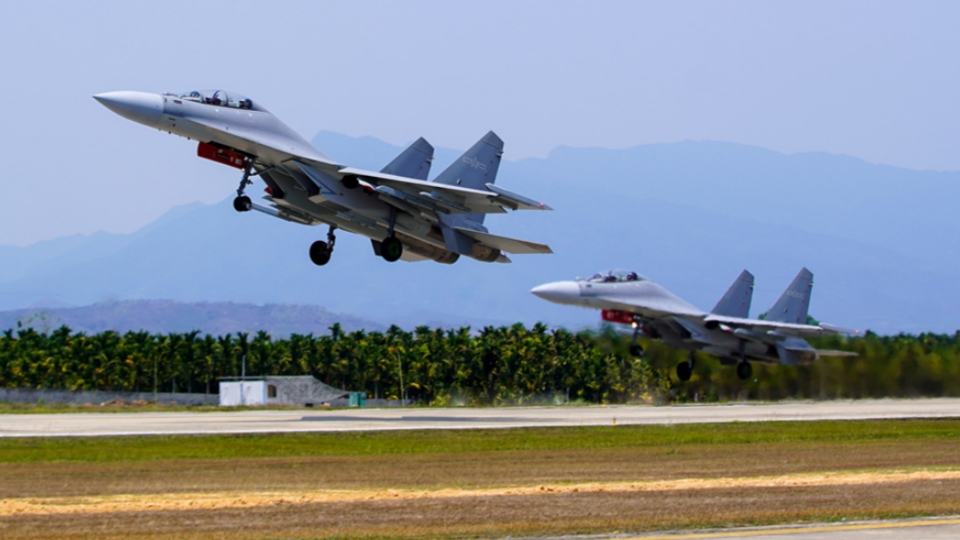 J-16 fighter jets engage in training