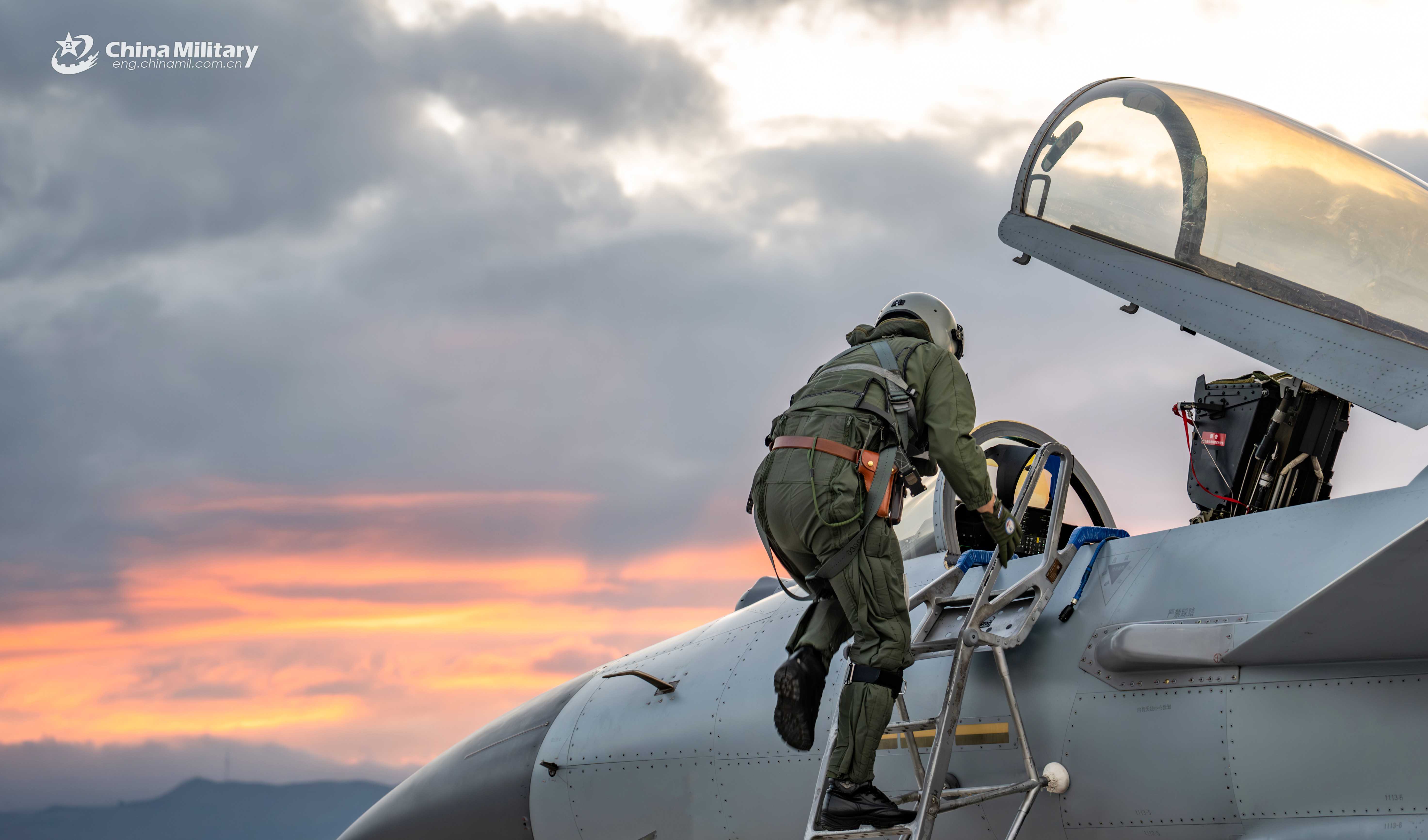 A pilot assigned to an aviation brigade of the air force under the Chinese PLA Southern Theater Command climbs into the cockpit of a J-10 fighter jet during a flight training exercise on September 17, 2025. (eng.chinamil.com.cn/Photo by Xiao Rui)