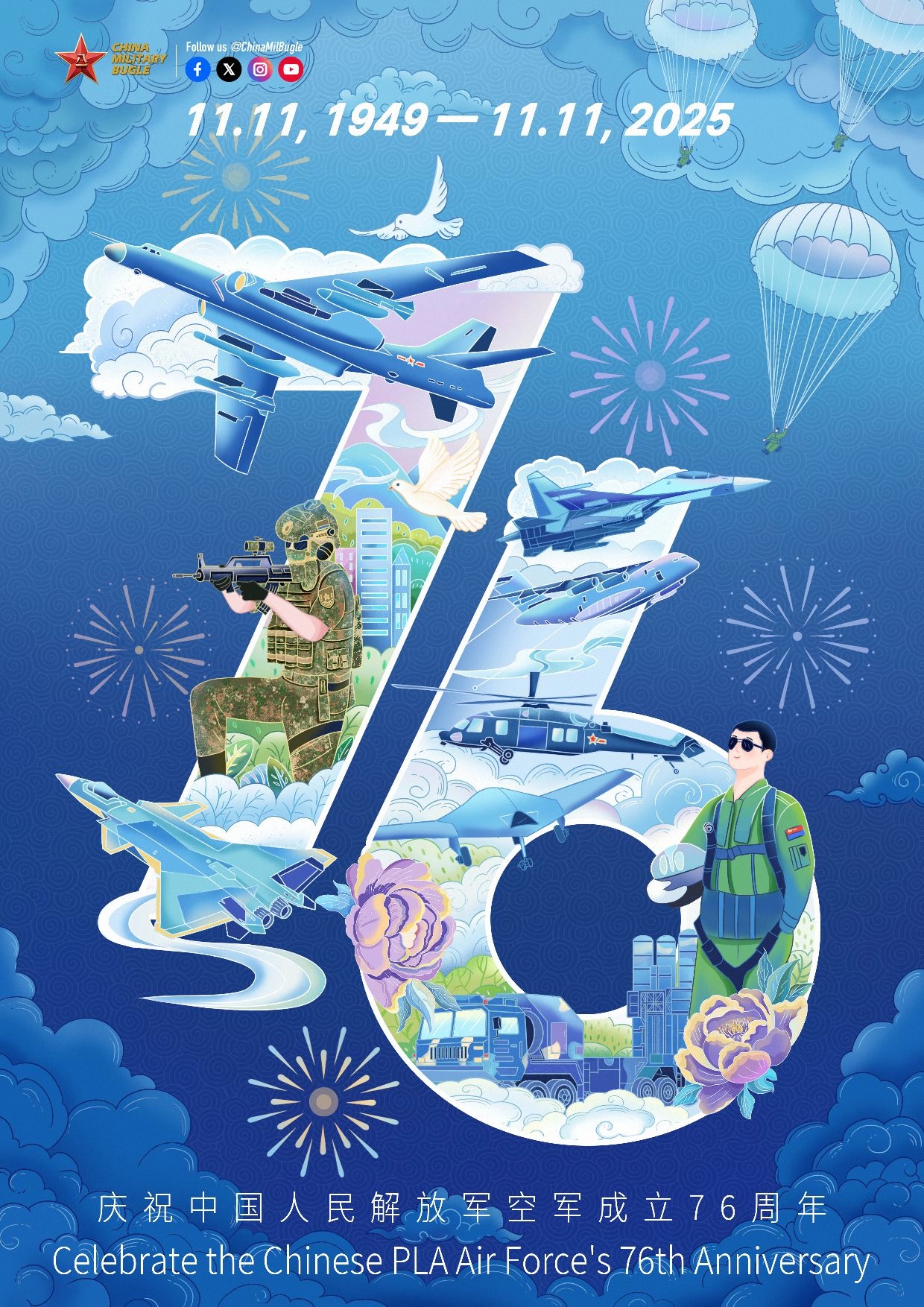 Today marks the 76th anniversary of the founding of the Chinese People's Liberation Army (PLA) Air Force.