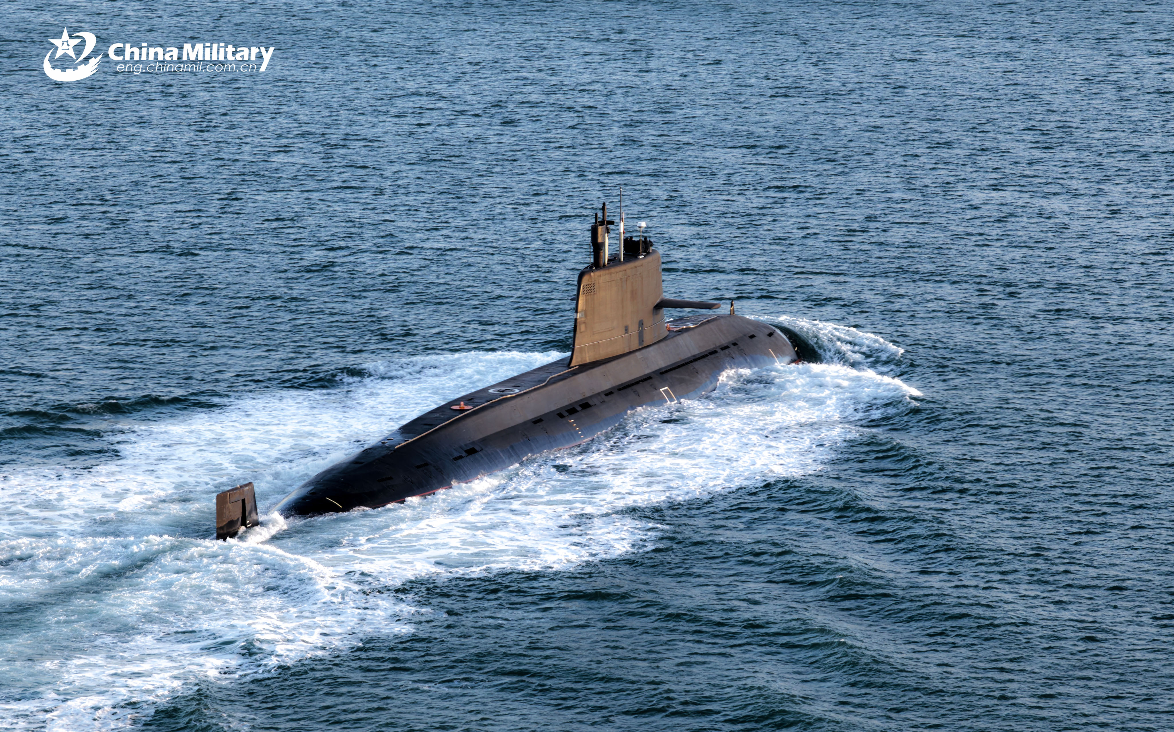 A submarine attached to a flotilla under the Chinese PLA Navy steams towards the designated area during a maritime training exercise in early December, 2025. (eng.chinamil.com.cn/Photo by Pang Zhiwei)