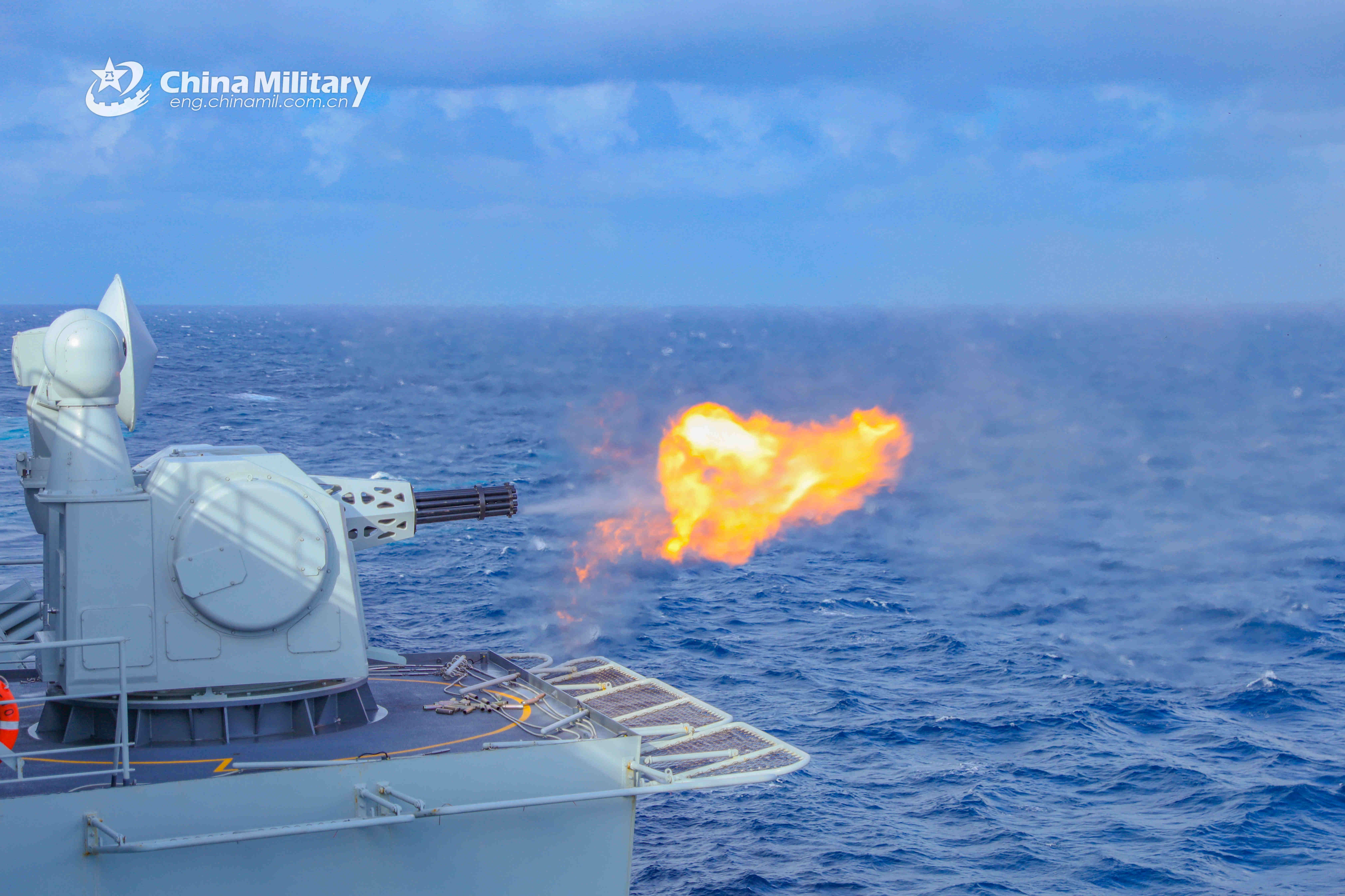 A vessel attached to a unit under the Chinese PLA Navy fires its close-in weapon system at the sea targets during a multi-subject training exercise in early December, 2025. (eng.chinamil.com.cn/Photo by Zhao Lingpeng)