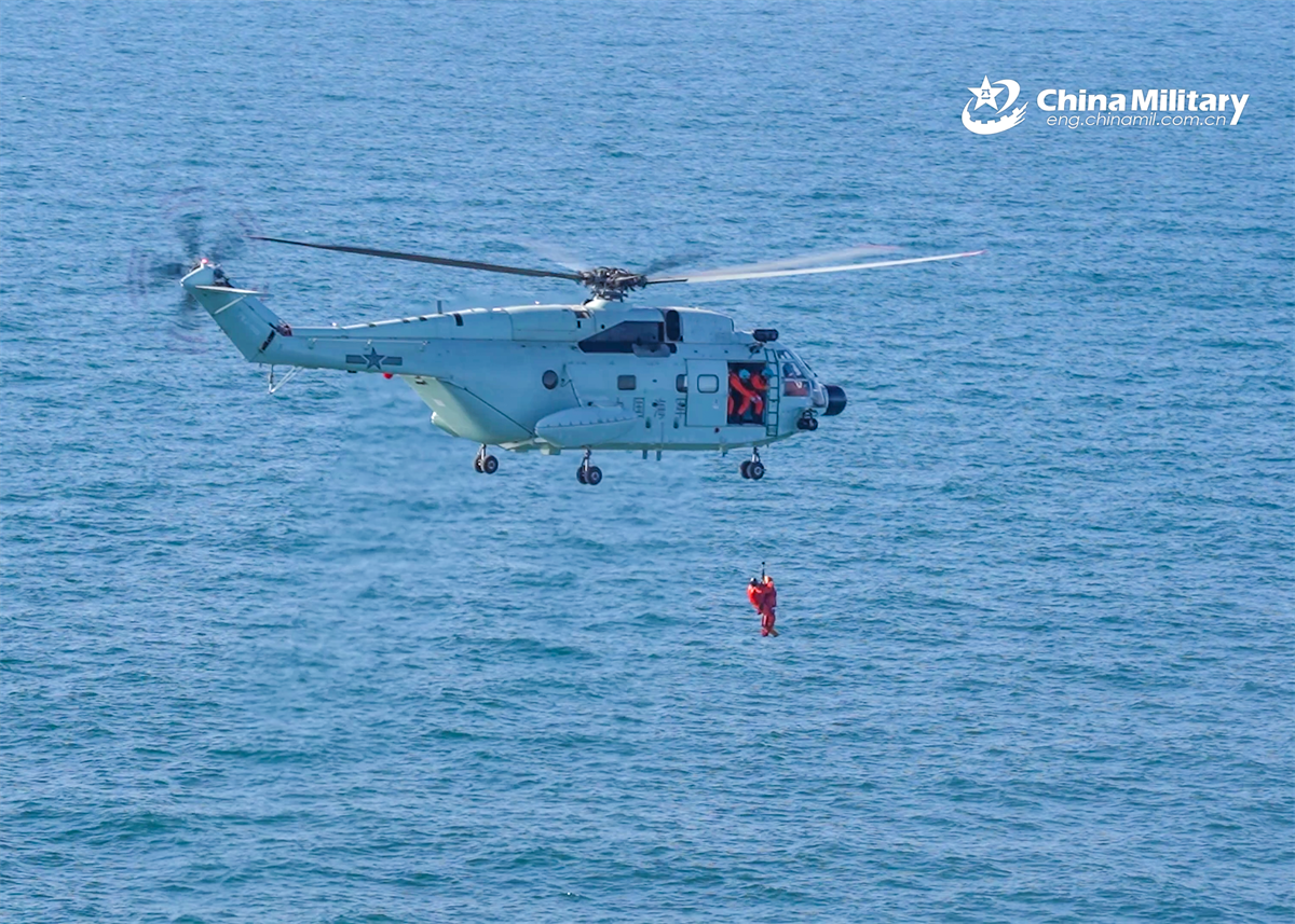 Soldiers assigned to an aviation unit of the Chinese PLA Navy conduct search and rescue training with a Z-8JH ship-borne rescue helicopter in late January, 2026. (eng.chinamil.com.cn/Photo by Gao Xiang)