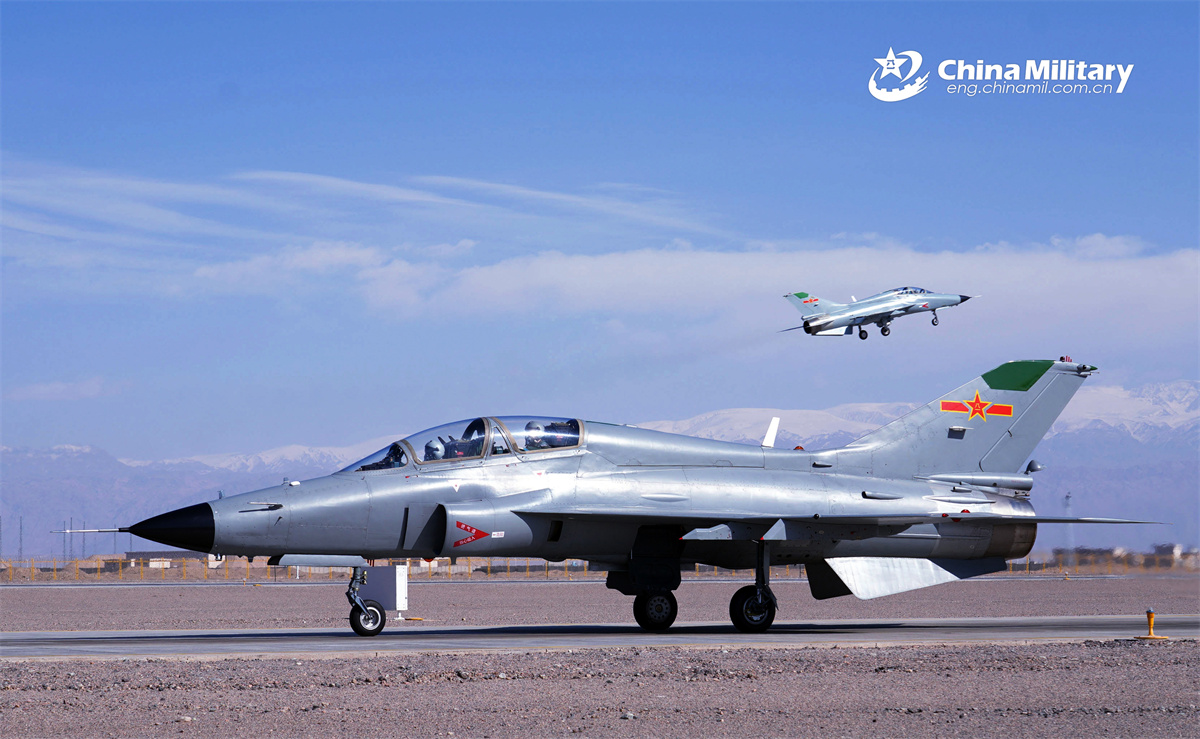 JL-9 jet trainers attached to the Chinese PLA Air Force Xi'an Flying College participate in a flight training exercise in mid-March, 2026. (eng.chinamil.com.cn/Photo by Li Qiang)