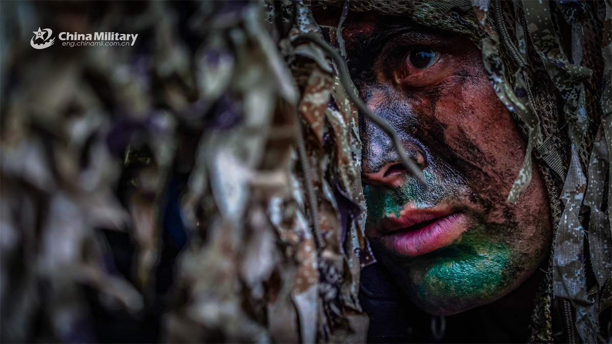 A sniper assigned to a brigade under the Chinese PLA Western Theater Command conducts observation in camouflage during a sniper training session. (eng.chinamil.com.cn/Photo by Jing Fulin and Chen Wei)