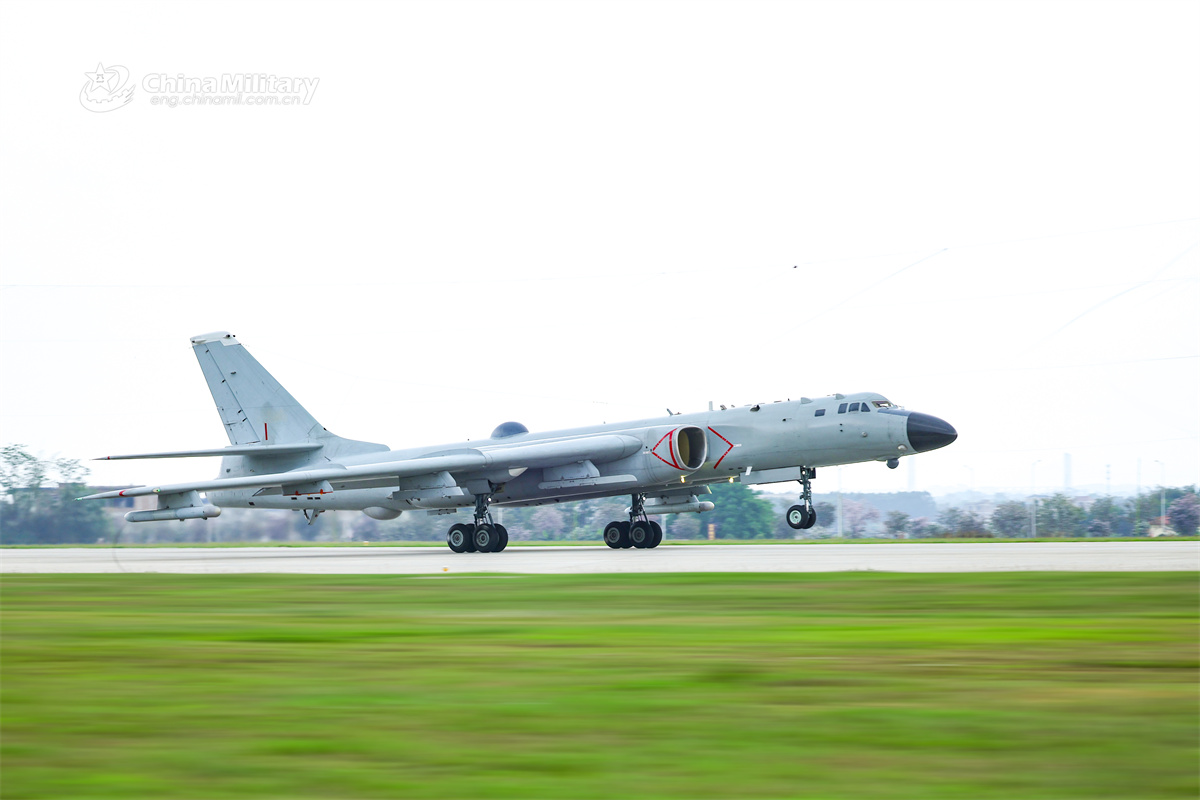 An H-6 bomber attached to an aviation regiment with the air force under the Chinese PLA Southern Theater Command takes off during a flight training exercise on March 30, 2026. (eng.chinamil.com.cn/Photo by Liu Weilong)