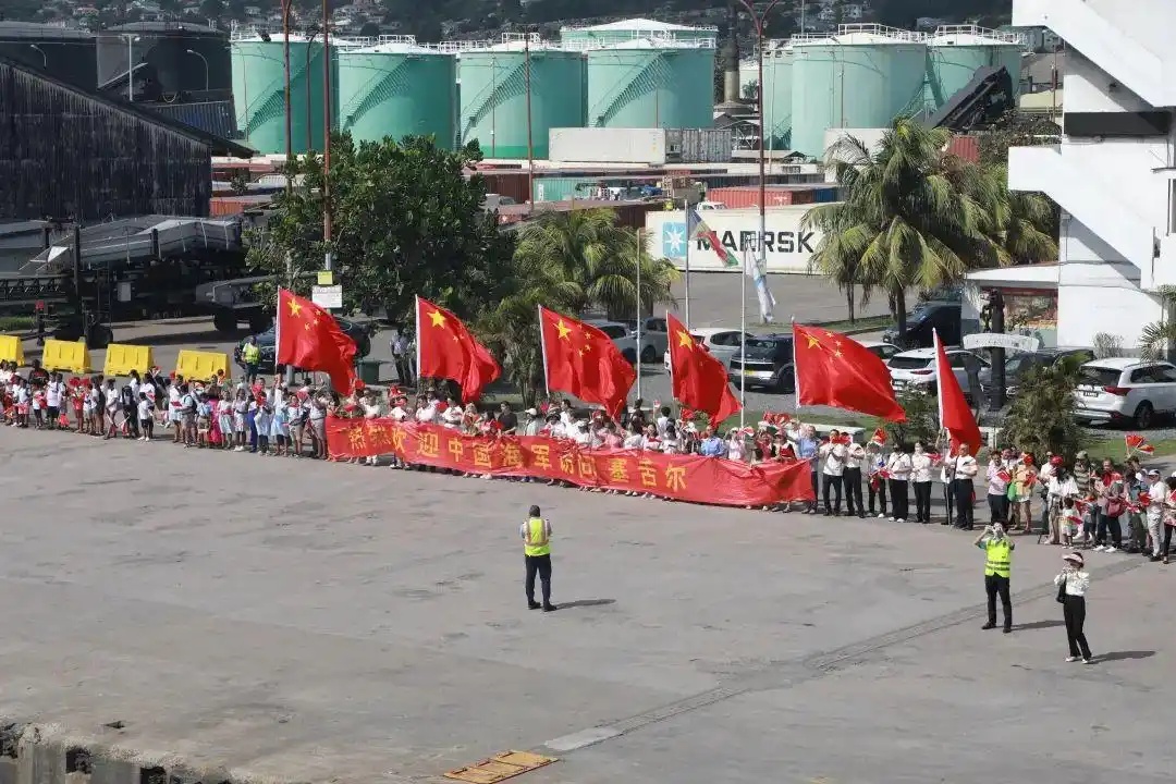 More than 200 people, including the Chief of the Seychelles Defense Forces as well as representatives of the Seychellois military, staff of the Chinese Embassy in Seychelles, Chinese-funded institutions, and local overseas Chinese, came to welcome the frigate at the dock.