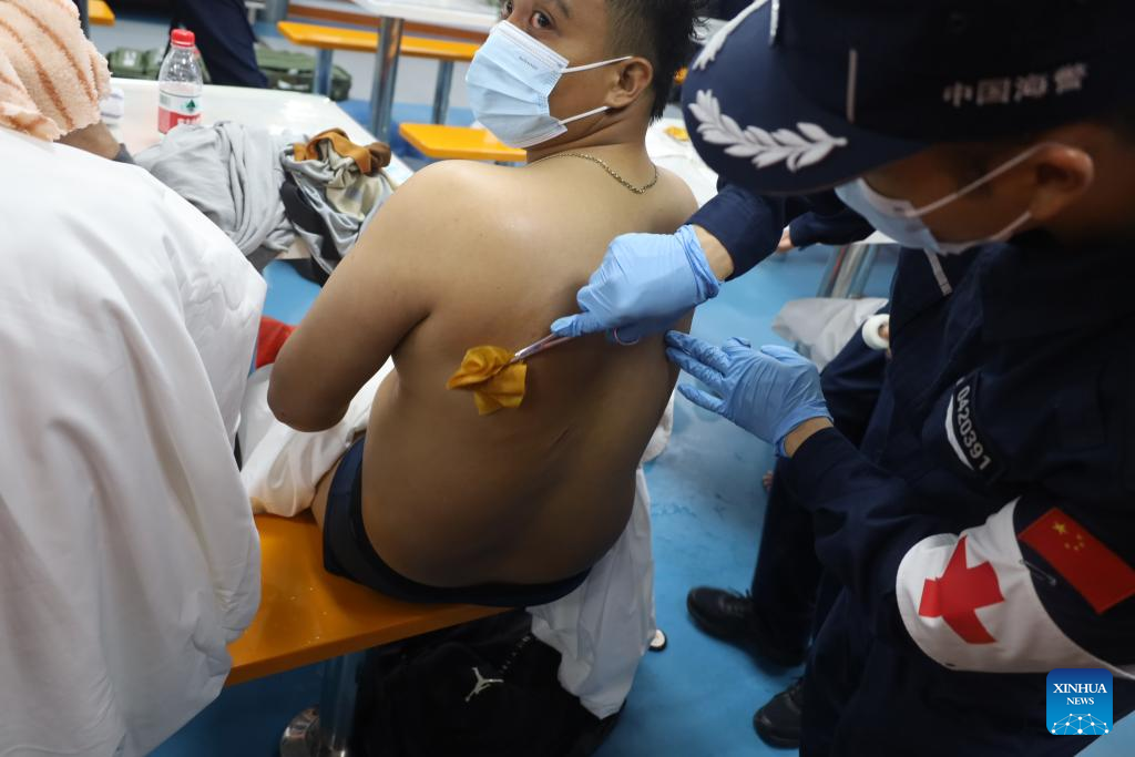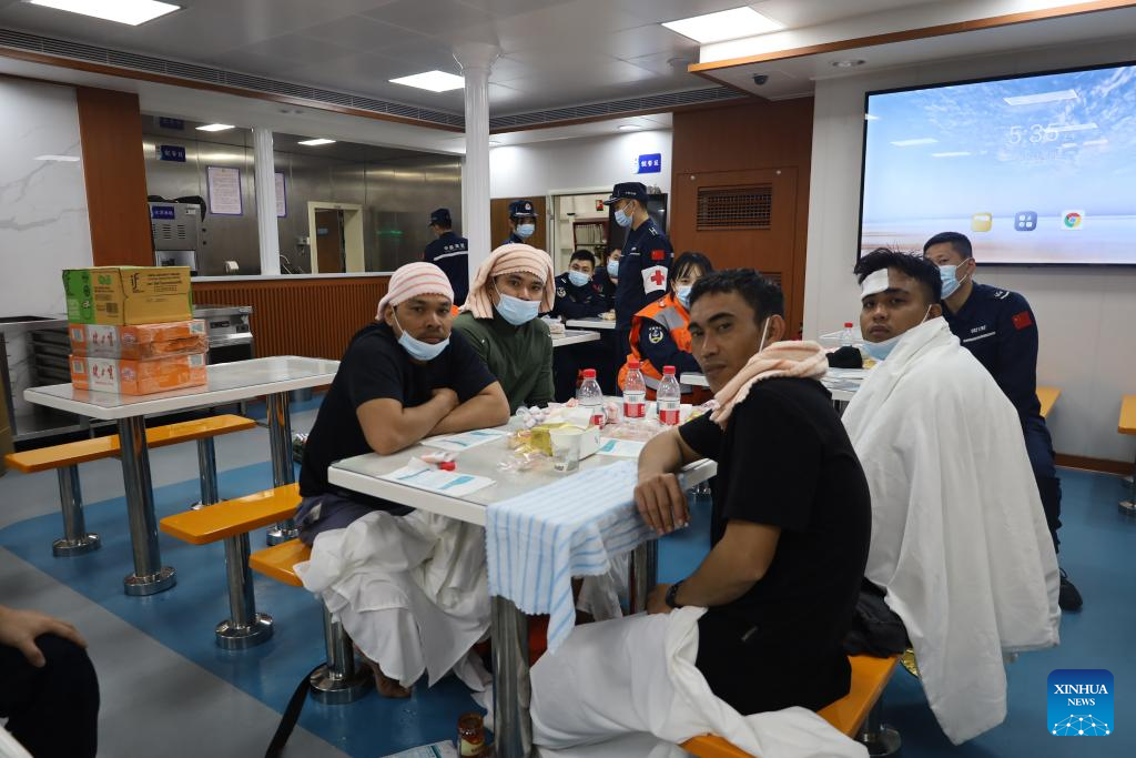 BEIJING, Jan. 23 (Xinhua) -- China Coast Guard (CCG) has saved 13 Filipino crew members from a shipwreck in the South China Sea, the CCG said on Friday.
