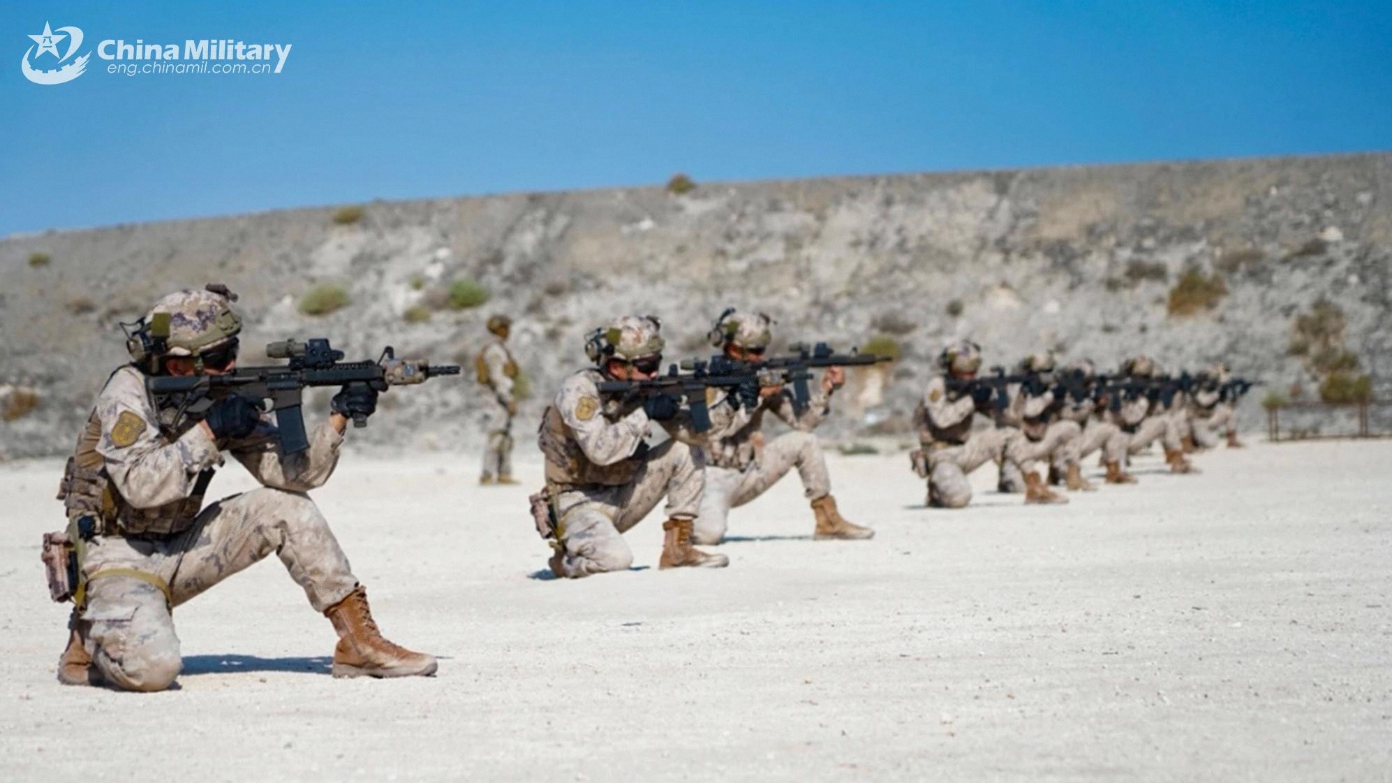 The Chinese participating troops practice live-fire shooting during the China-Saudi Arabia Blue Sword-2025 naval joint training.