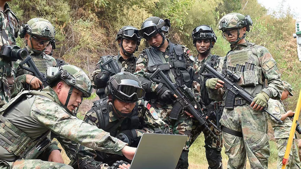 Participating troops of China-Vietnam "Hand-in-Hand 2025 " joint army training conduct mix-grouped training