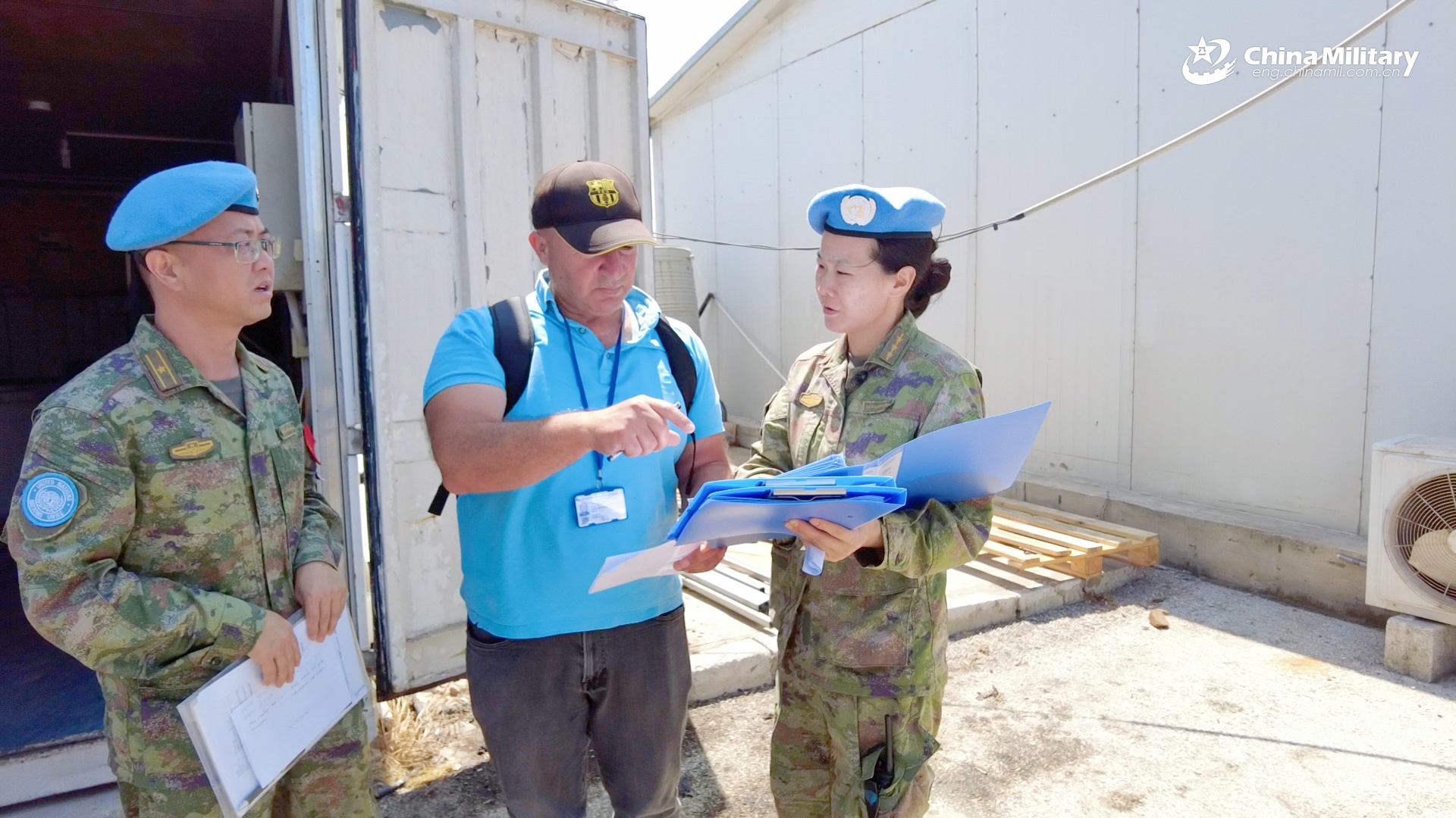 The inspection team of the United Nations Interim Force in Lebanon (UNIFIL) conducts the third quarter equipment inspection at the 23rd Chinese Peacekeeping Level-1+ Hospital to UNIFIL on July 29, 2025. (Photo by Gao Yan)
