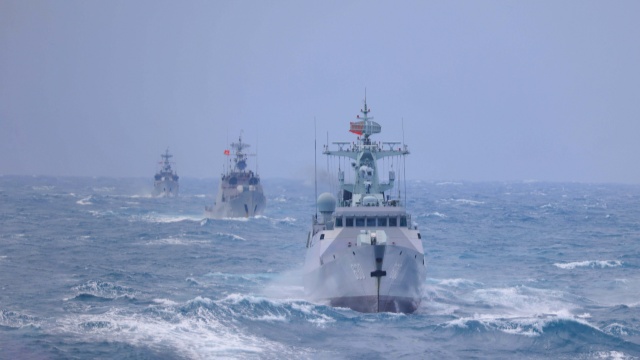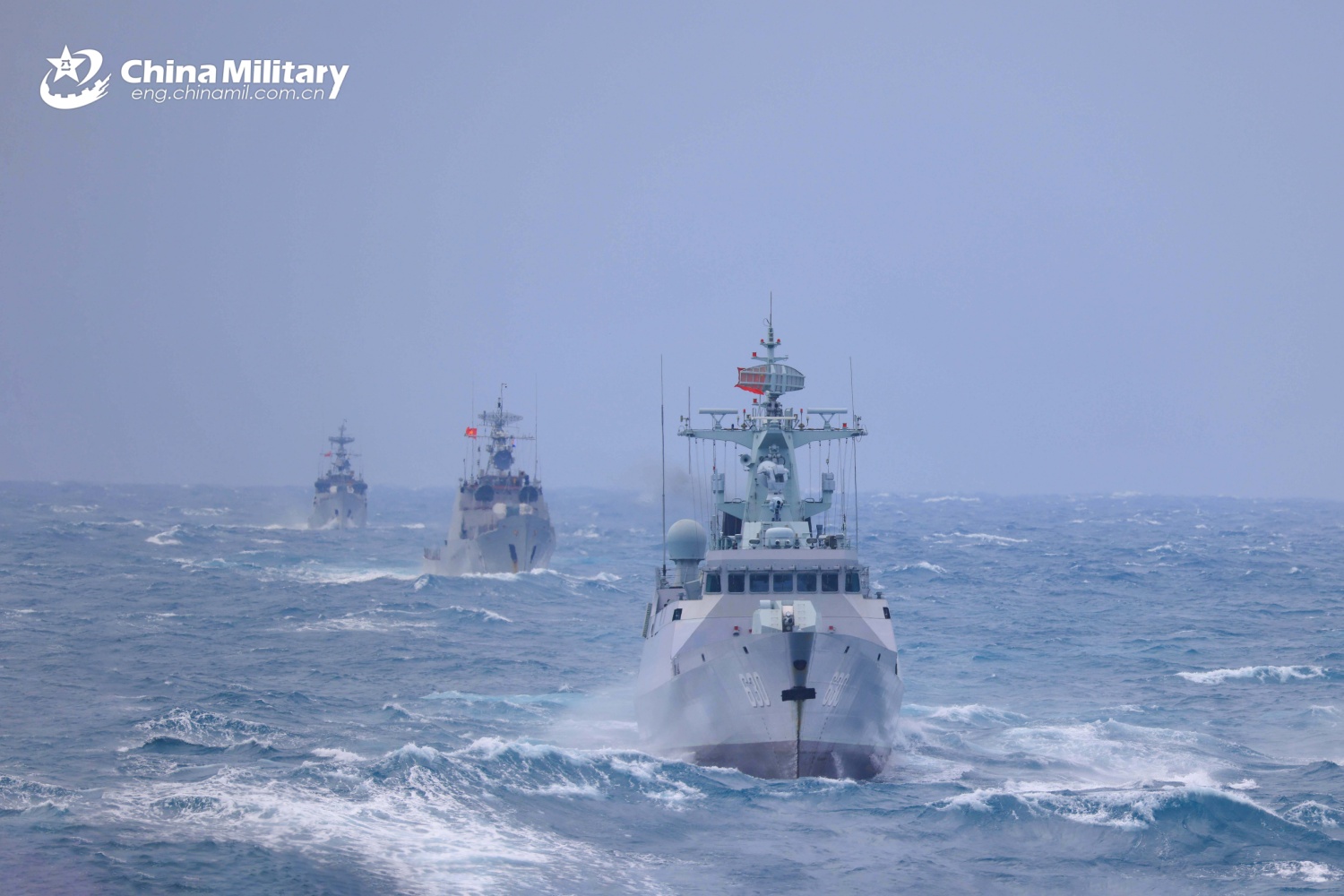 Vessels from the Chinese and Vietnamese navies conduct formation maneuver exercise on November 20, 2025. (Photo by Li Zhengsong)
