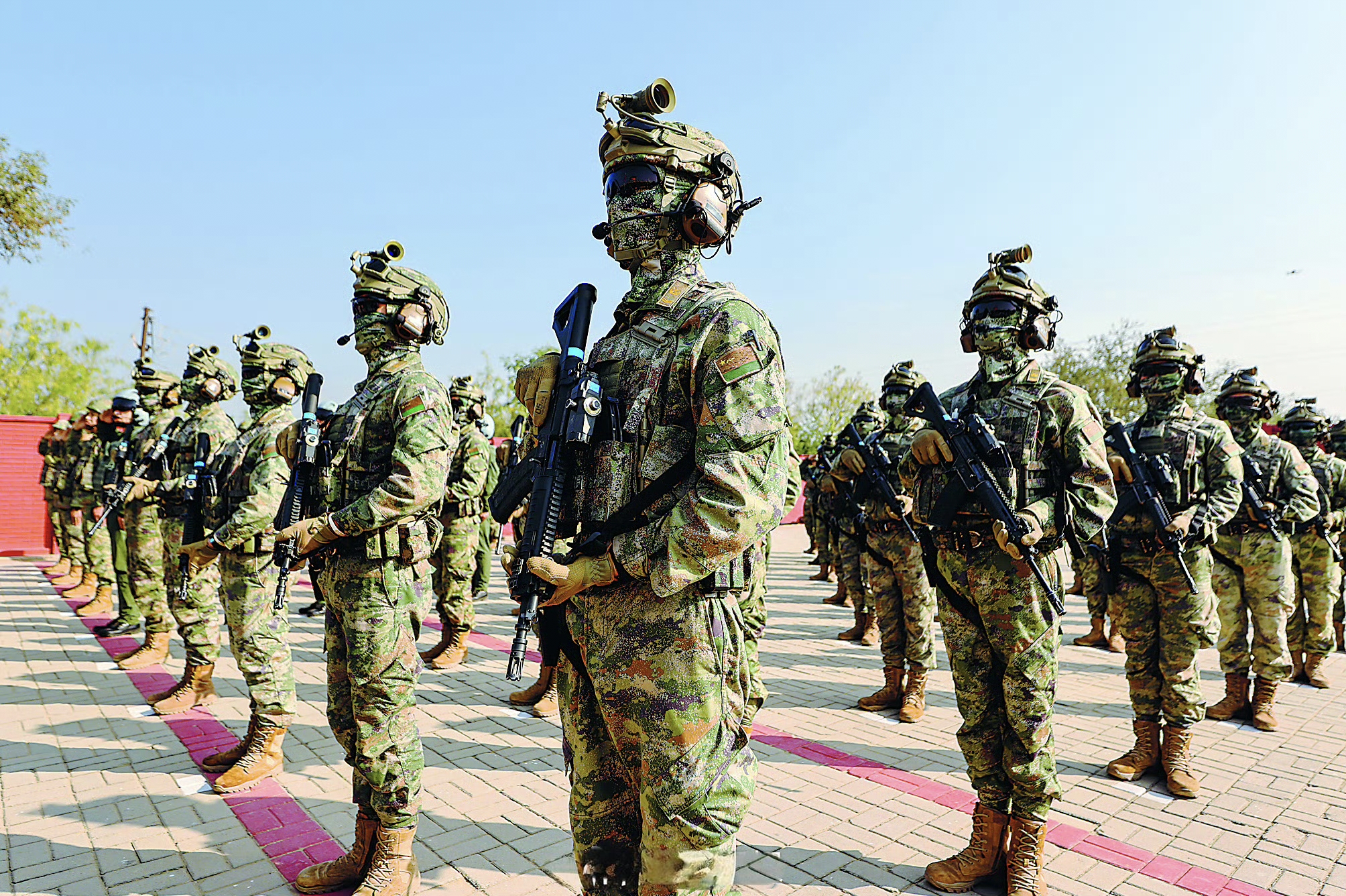 Troops assigned to the Chinese People's Liberation Army (PLA) Western Theater Command attend the opening ceremony for the China-Pakistan joint anti-terrorist exercise "Warrior-IX" held at the National Counter Terrorism Center (NCTC) in Pabbi, Pakistan on December 1, 2025.