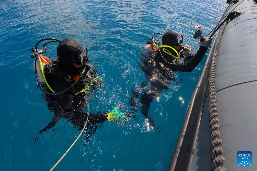 Law enforcers of the China Coast Guard (CCG) vessel Sandu conduct diving training in the South China Sea, March 1, 2026. The CCG vessel Sandu conducted patrols in the South China Sea to safeguard China's territorial sovereignty and maritime rights and interests. (Xinhua/Mao Jun)