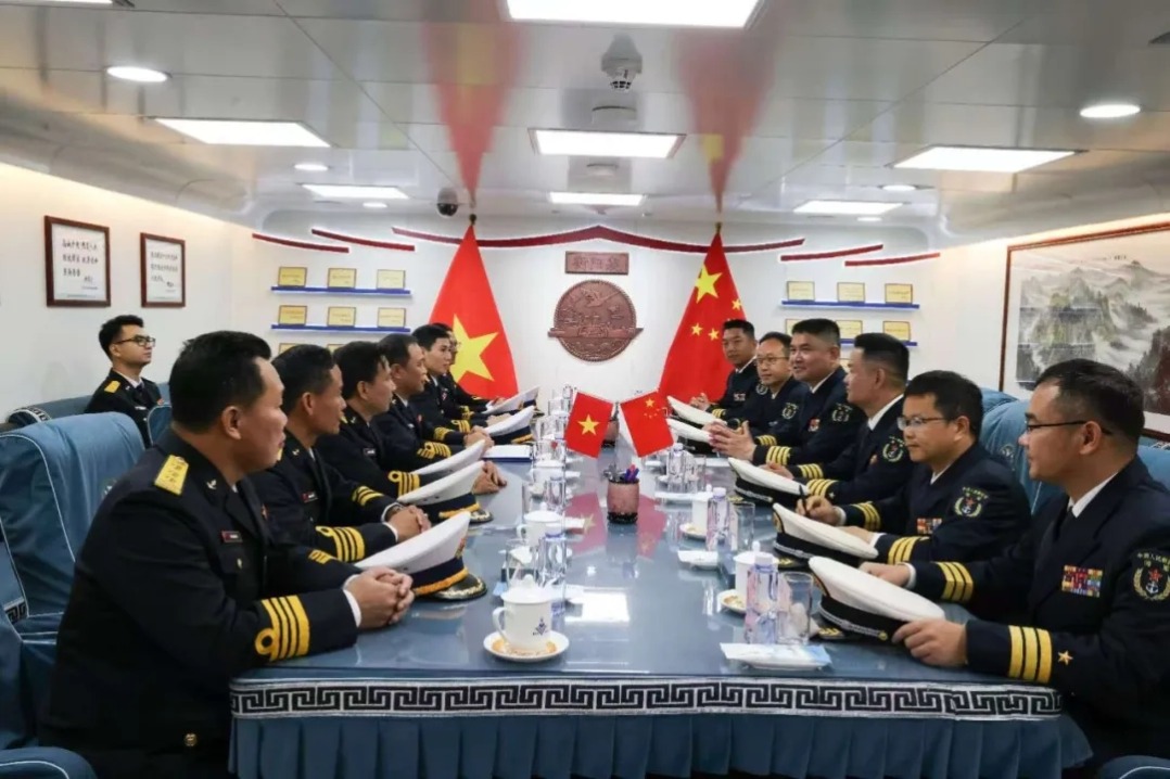 During the exchange, Dong and Phan also took part in a series of activities, including visits to border defense troops, schools, and enterprises, and planting friendship trees. They also jointly attended a departure ceremony for the China-Vietnam joint naval patrol and joint training in the Beibu Gulf and laid flower baskets at the monument to the revolutionary martyrs of China and Vietnam.