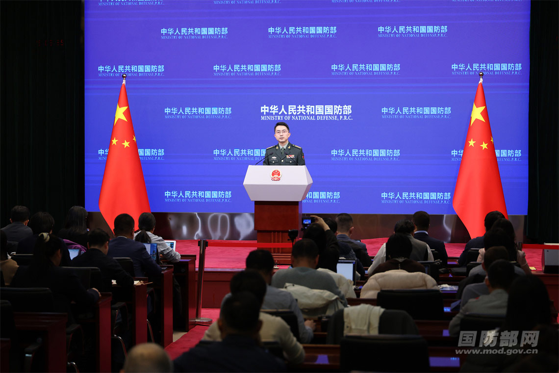 Senior Colonel Jiang Bin, Deputy Director-General of the Information Office of the Ministry of National Defense (MND) and Spokesperson for the MND, answered questions at a regular press conference on the afternoon of November 27, 2025. (mod.gov.cn)