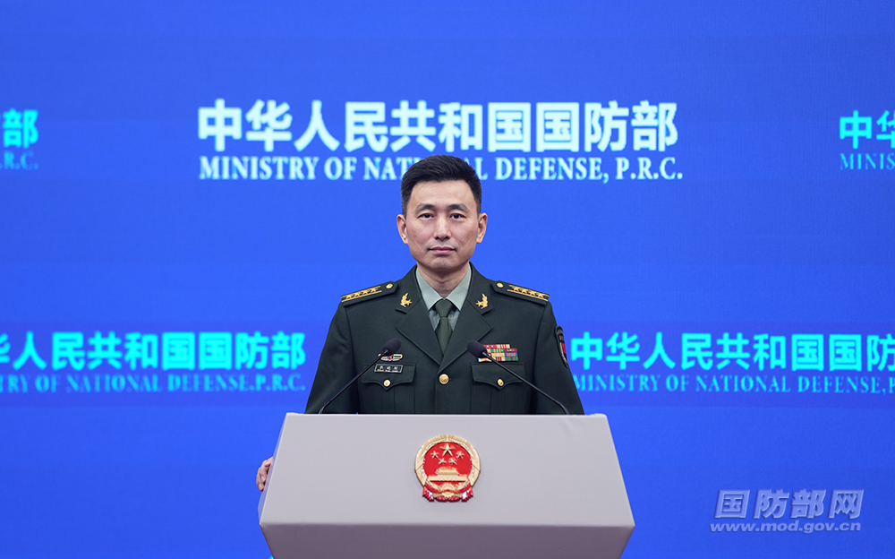 Senior Colonel Zhang Xiaogang, spokesperson for the Ministry of National Defense (MND), answered questions at a regular press conference on the afternoon of December 25, 2025. (mod.gov.cn)
