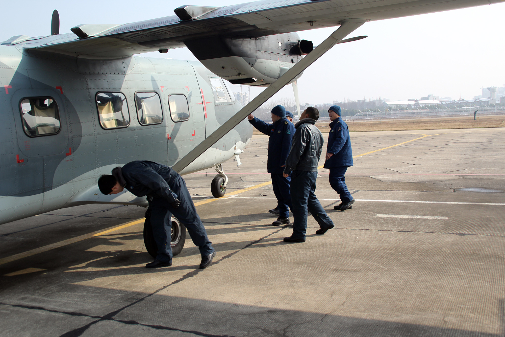 Maintenance men assigned to a transport aviation brigade of the airborne troops under the PLA Air Force perform inspections on a Y-12 transport aircraft prior to the flight training in early January, 2018. (eng.chinamil.com.cn/Photo by Yin Wenbo)