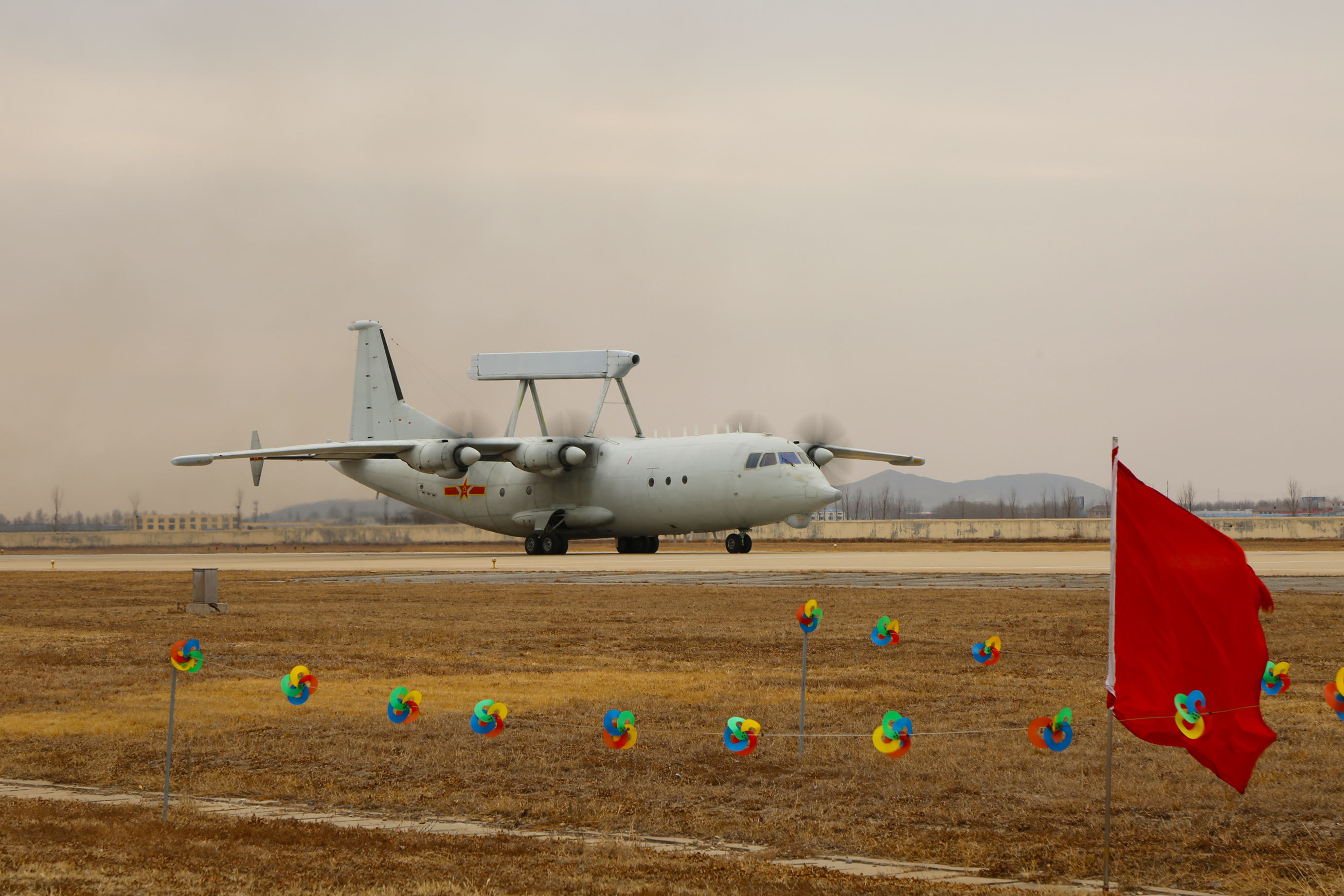 A KJ-200 airborne early warning (AEW) aircraft attached to a naval aviation regiment under the PLA Northern Theater Command taxies towards the runway before takeoff for a flight training exercise in Jiaodong Peninsula of eastern China's Shandong Province on February 24, 2018. (eng.chinamil.com.cn/Photo by Xing Yun, Xie Junjie, Ye Weixin and Yan Menglong)