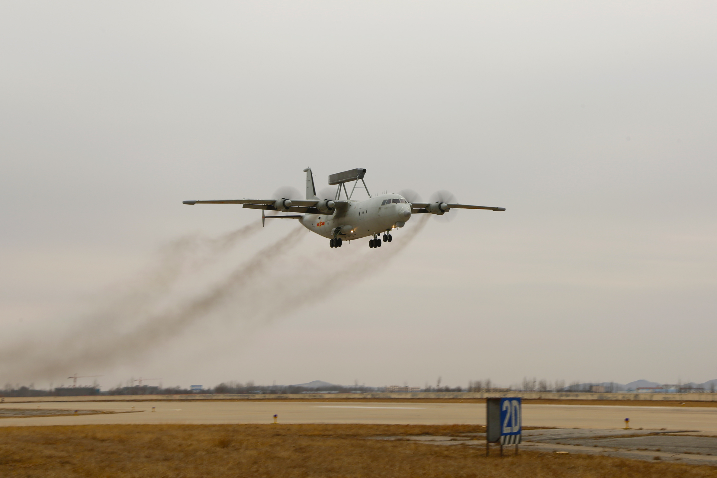 A KJ-200 airborne early warning (AEW) aircraft attached to a naval aviation regiment under the PLA Northern Theater Command takes off for a flight training exercise in Jiaodong Peninsula of eastern China's Shandong Province on February 24, 2018. (eng.chinamil.com.cn/Photo by Xing Yun, Xie Junjie, Ye Weixin and Yan Menglong)