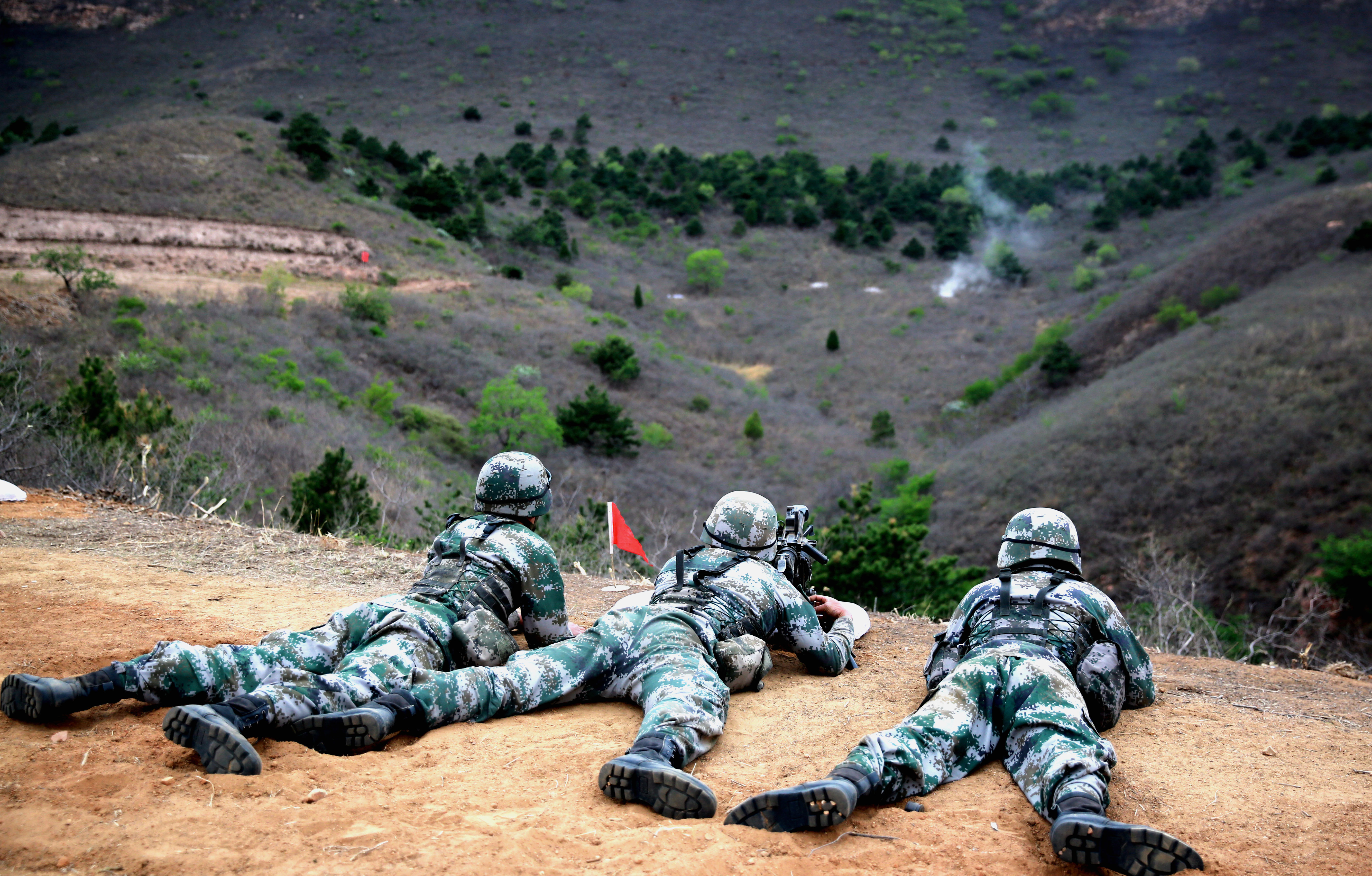 Soldiers assigned to a combined brigade under the PLA 80th Group Army fire their 35mm automatic grenade launcher at mock targets during a live-fire training exercise in early May, 2018. (eng.chinamil.com.cn/Photo by Xu Bin and Guo Daoxiong)