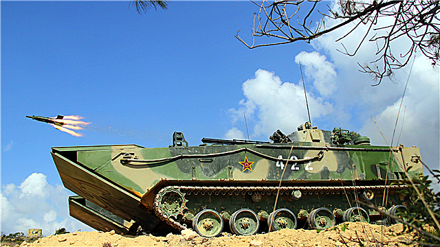 An amphibious tank fires an anti-tank missile at mock targets during a live-fire training exercise in mountainous area of south China's Guangdong Province on May 20, 2018. It is attached to a brigade under the PLA 74th Group Army. (eng.chinamil.com.cn/Photo by Li Bin)