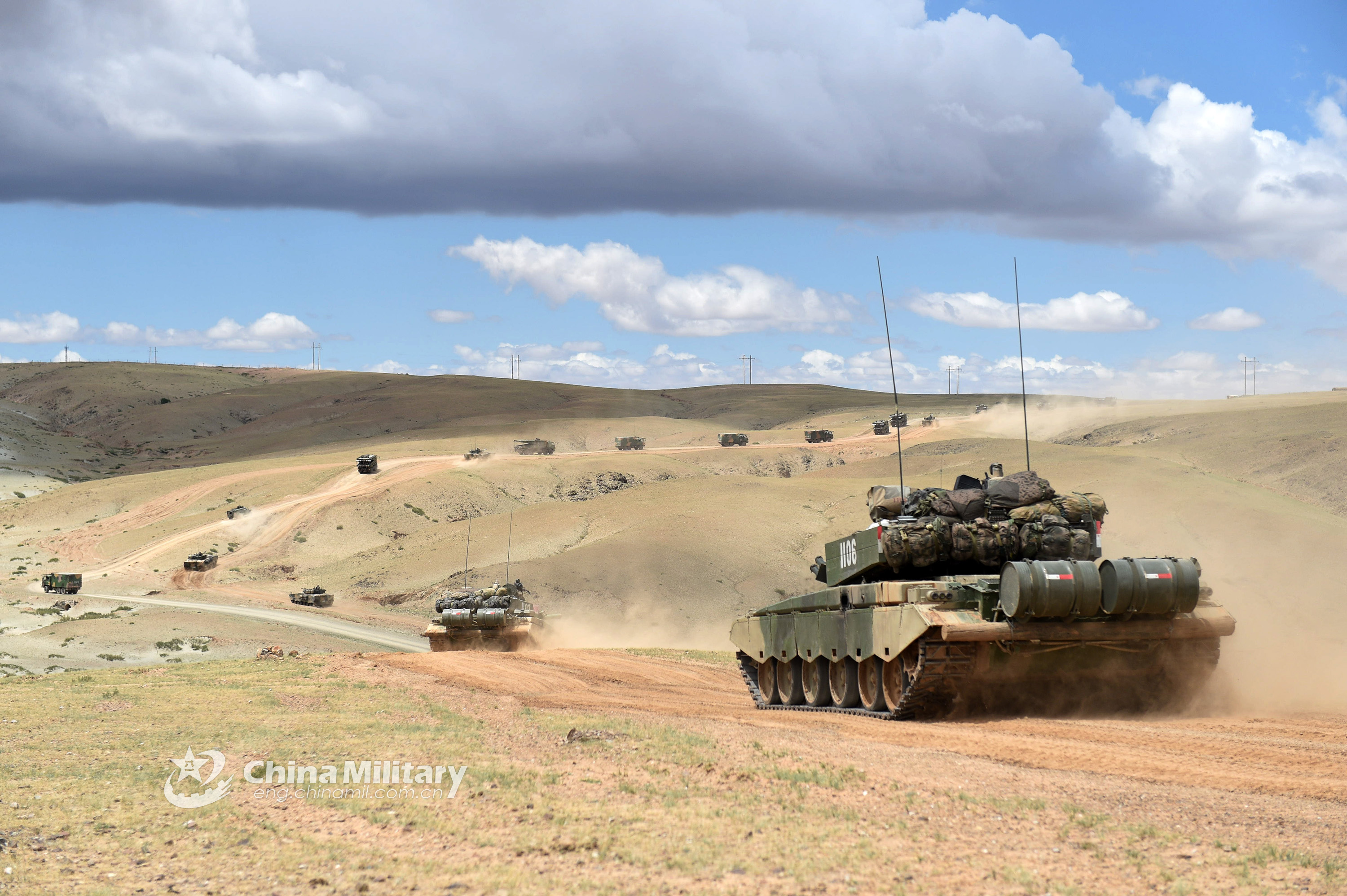 Type-99A tanks rumble in desert
