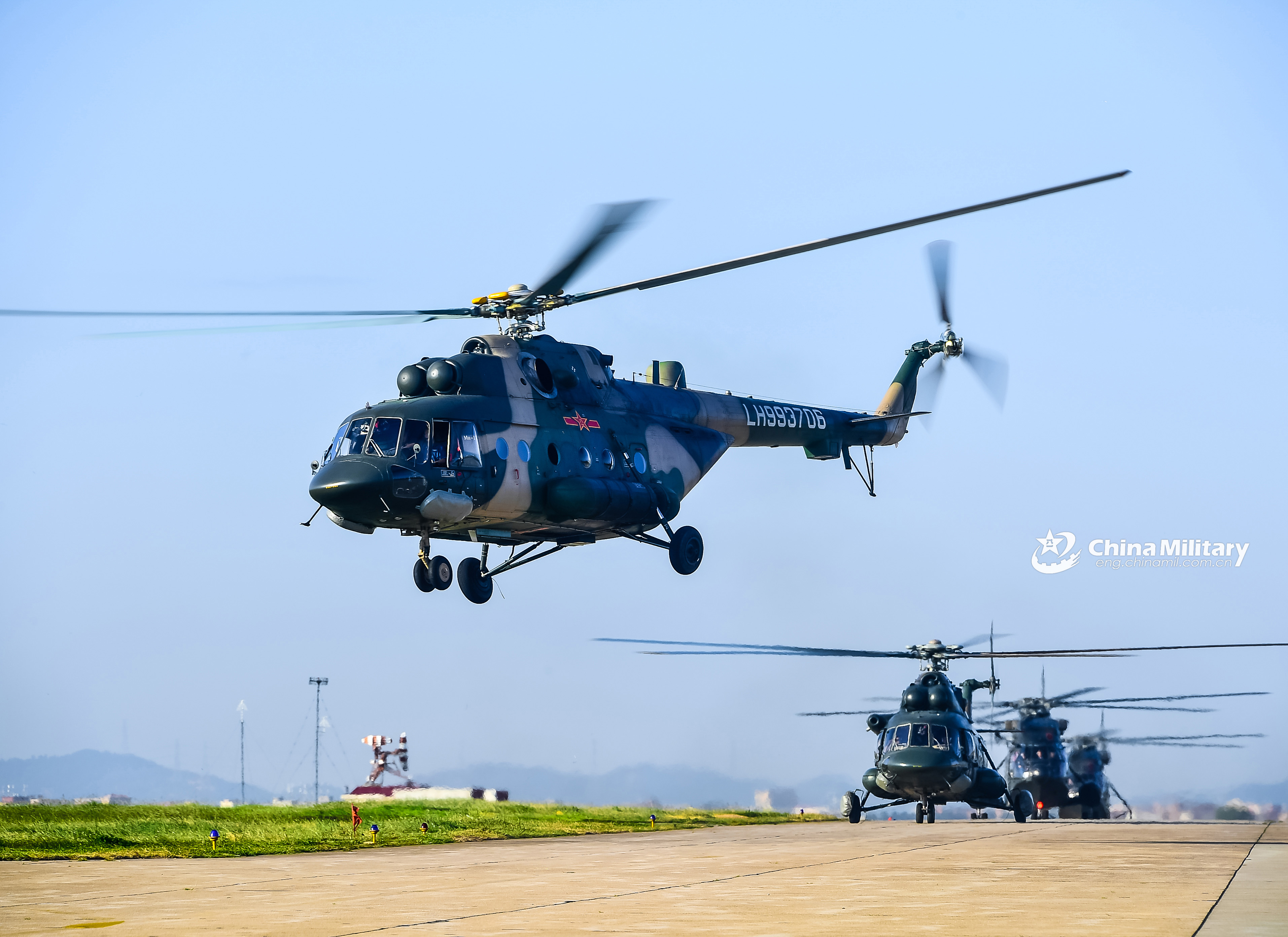 Mi-17 transport helicopters attached to an army aviation brigade under the PLA 73rd Group Army lift off successively for a flight training exercise on September 13, 2018. (eng.chinamil.com.cn/Photo by Li Shilong)
