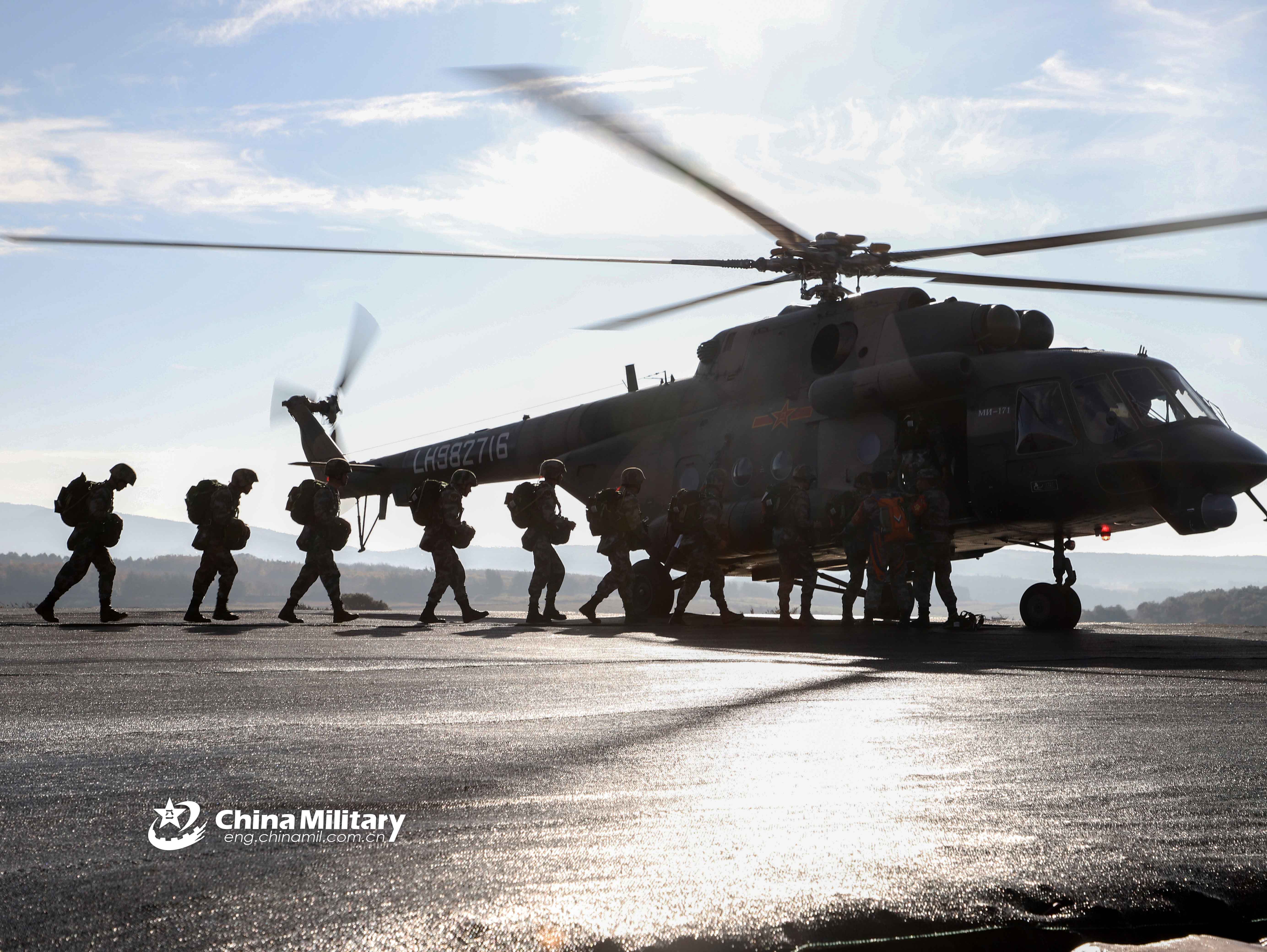 Special operations soldiers assigned to a brigade under the PLA 75th Group Army queue to board a Mi-171 transport helicopter during a recent parachute training exercise in southwest China's Yunnan Province. (eng.chinamil.com.cn/Photo by Sun Xiaolong and Zhang Zhengju)