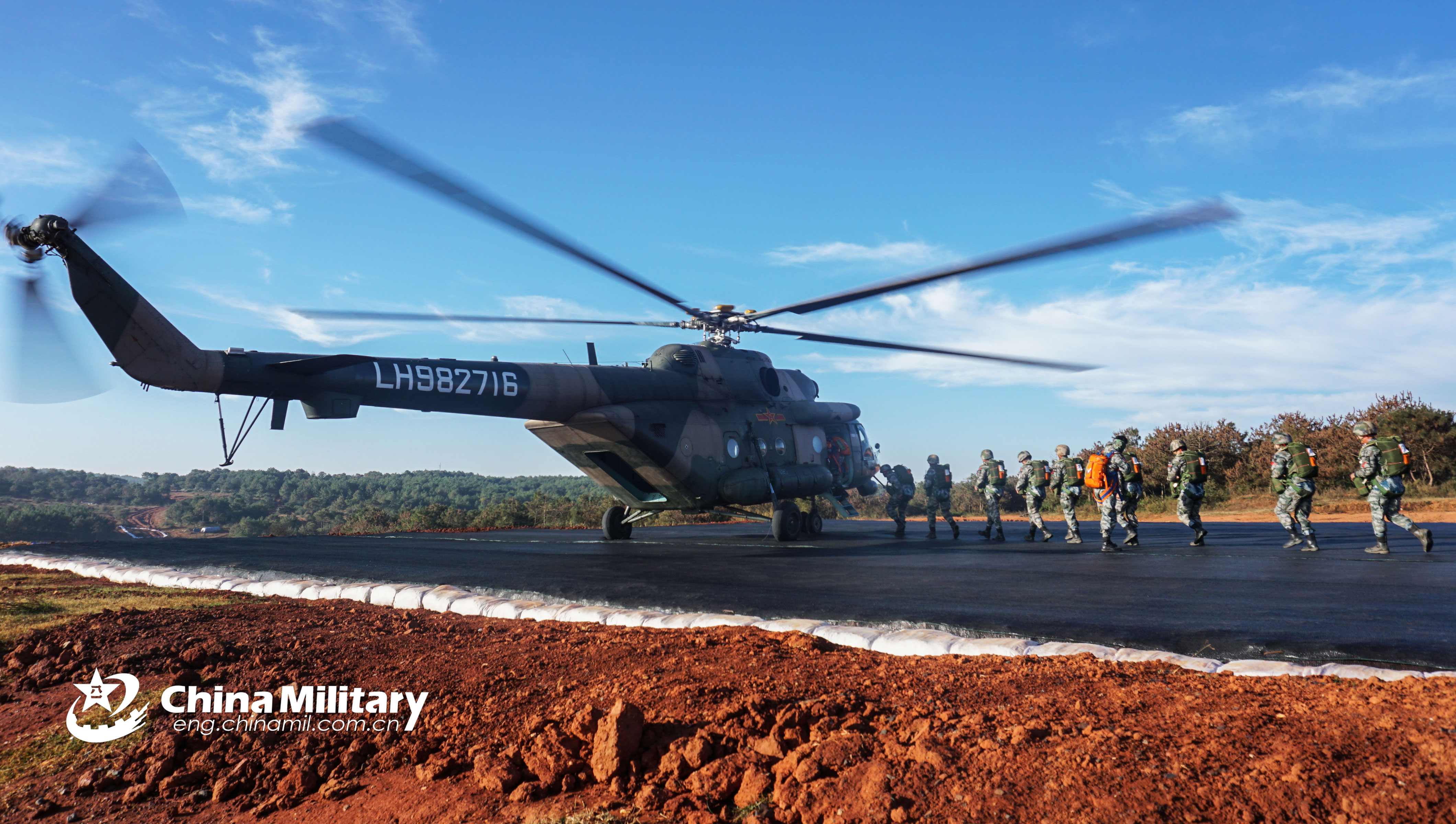 Special operations soldiers assigned to a brigade under the PLA 75th Group Army queue to board a Mi-171 transport helicopter during a recent parachute training exercise in southwest China's Yunnan Province. (eng.chinamil.com.cn/Photo by Sun Xiaolong and Zhang Zhengju)