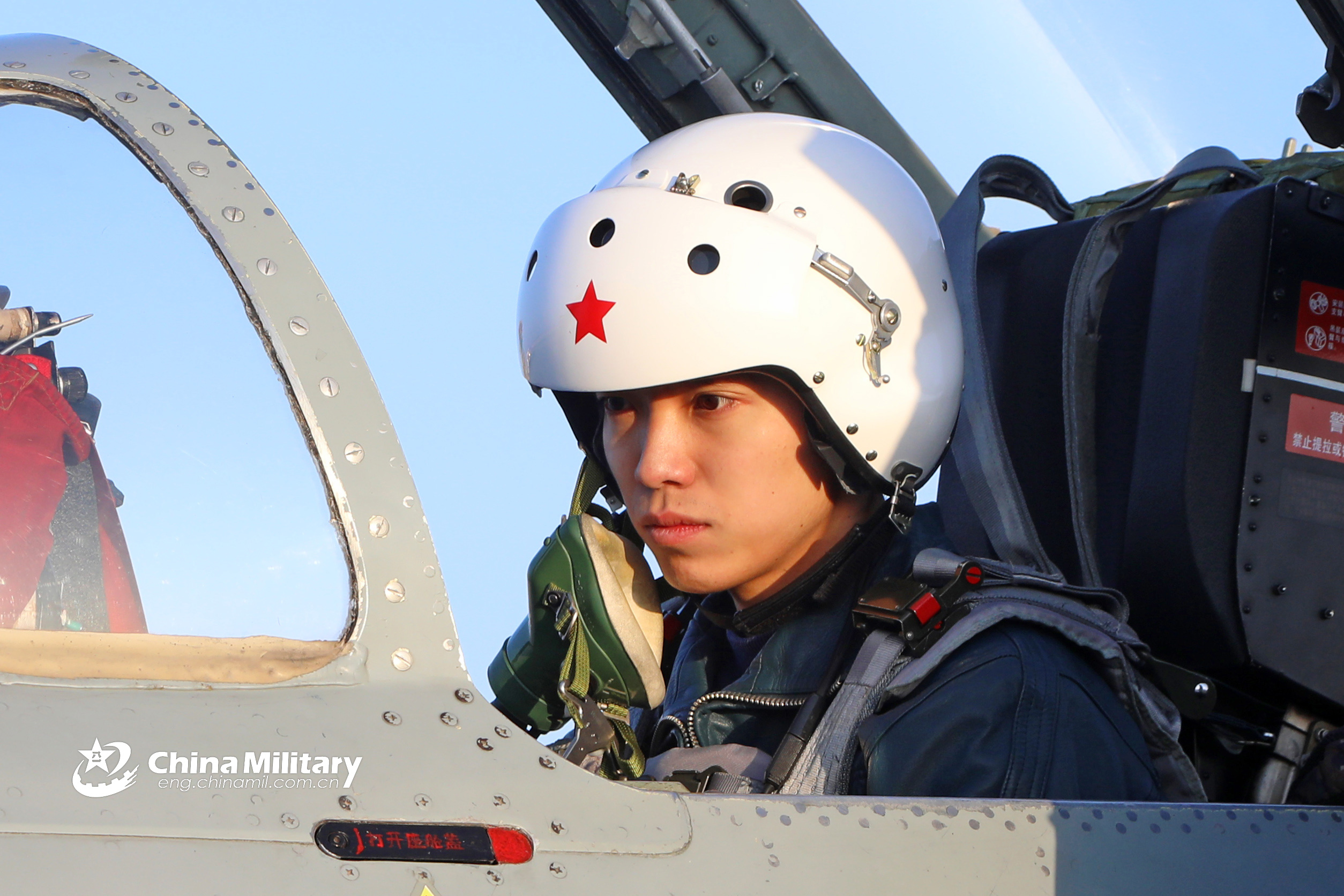 A female pilot jointly recruited by a brigade under the PLA Air Force Xi'an Flight Academy and Tsinghua University gets settled in the cockpit of her J-7 fighter jet prior to a flight training course on January 29, 2019. (eng.chinamil.com.cn/Photo by Cui Baoliang)