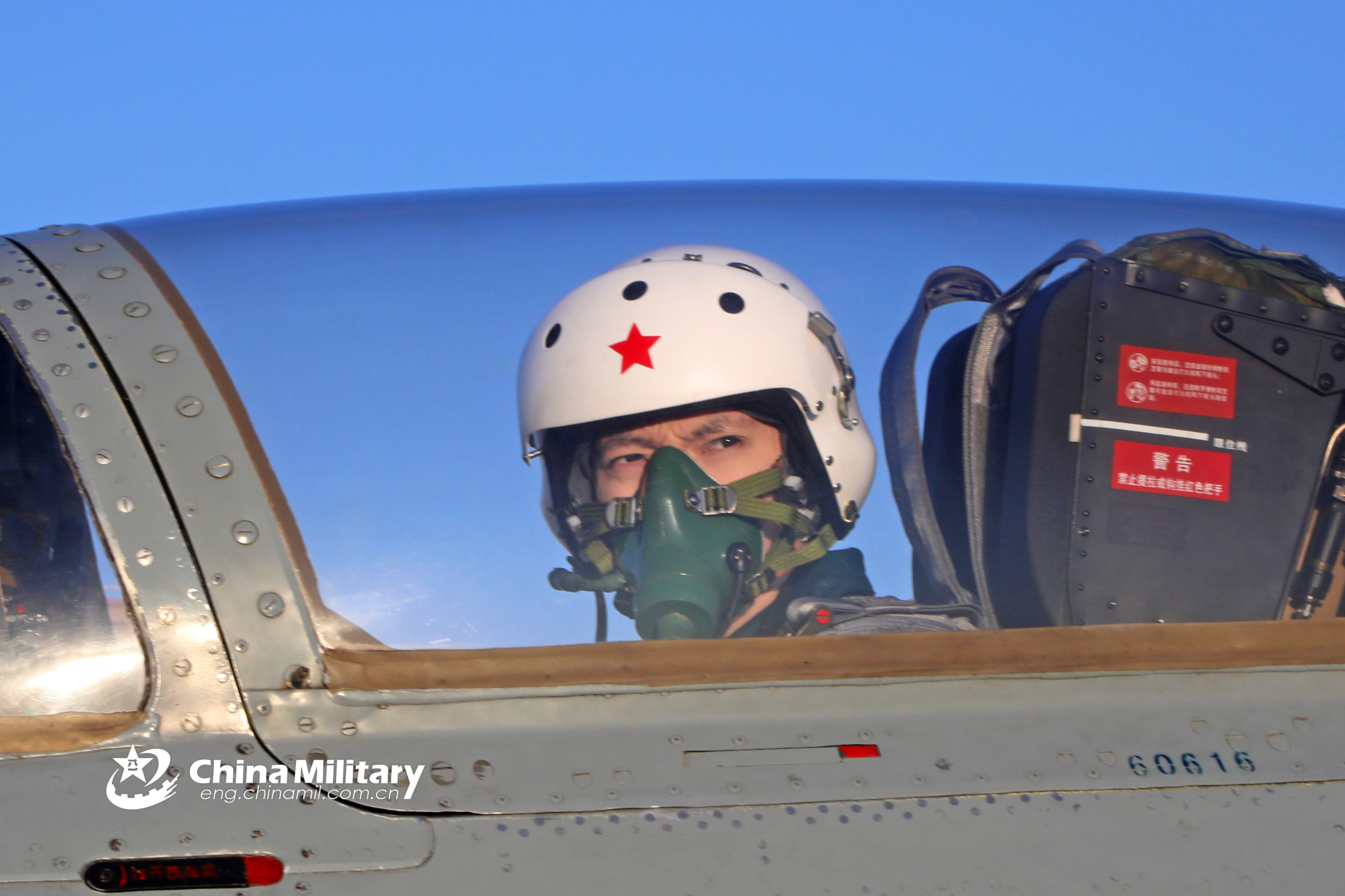 A female pilot jointly recruited by a brigade under the PLA Air Force Xi'an Flight Academy and Tsinghua University gets settled in the cockpit of her J-7 fighter jet prior to a flight training course on January 29, 2019. (eng.chinamil.com.cn/Photo by Cui Baoliang)