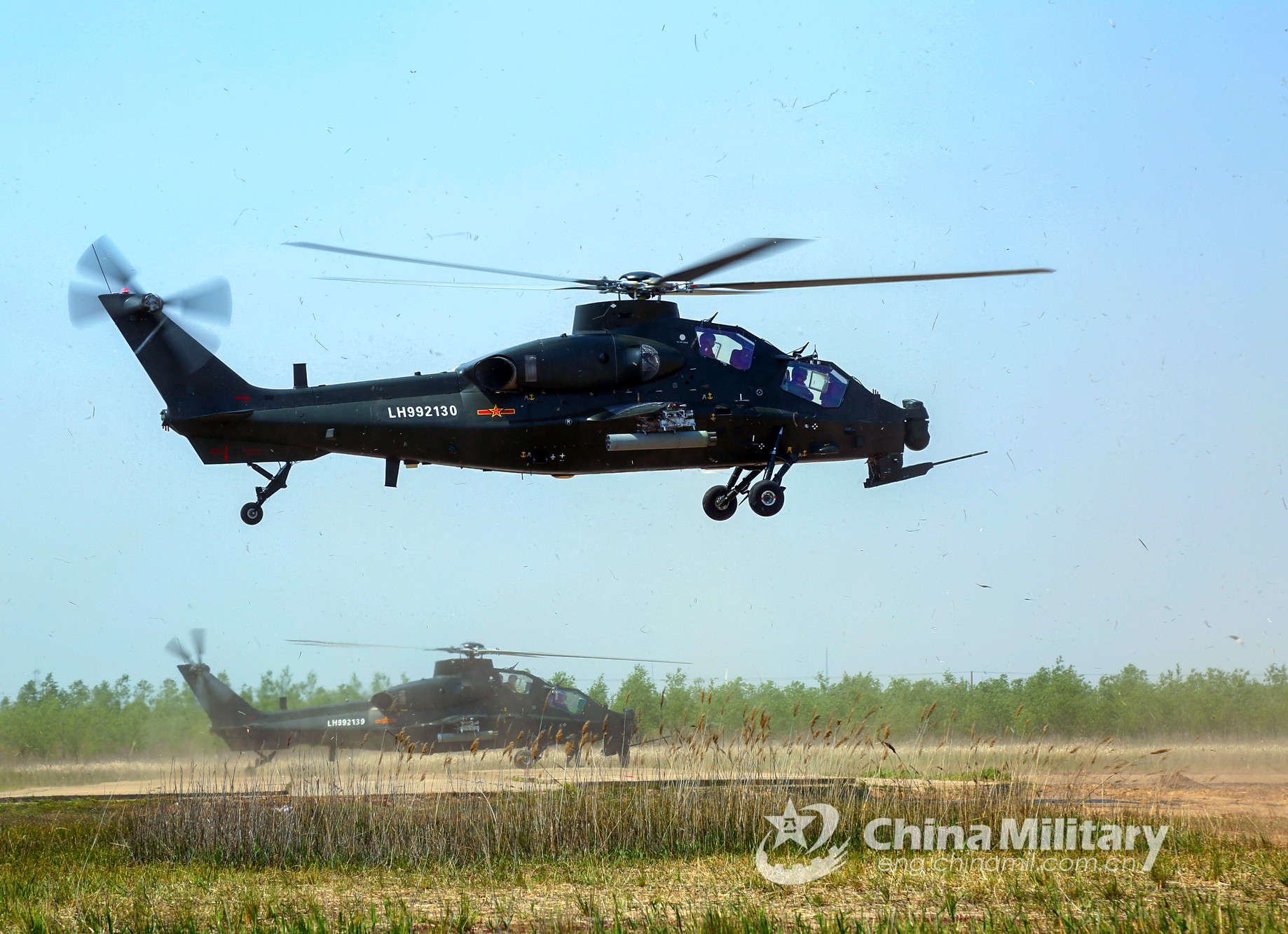 A WZ-10 attack helicopter attached to an army aviation brigade under the PLA 72nd Group Army lifts off for a live-fire flight training exercise on April 28, 2020. The training exercise mainly focused on subjects including maritime assault and defense at ultra-low altitude, round-the-clock live-fire operation and others. (eng.chinamil.com.cn/Photo by Zhang Huanpeng)