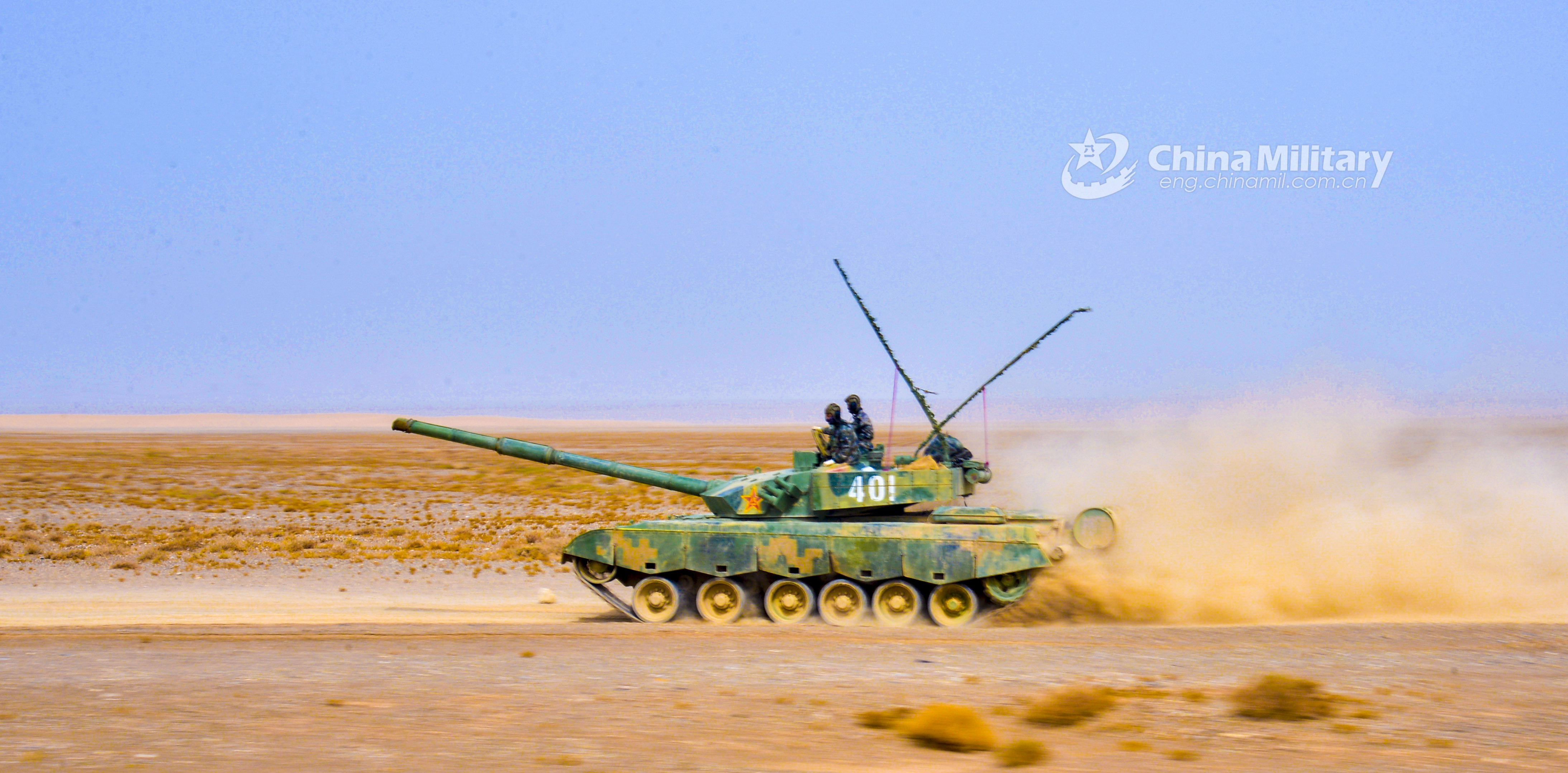 The vehicle attached to an armored detachment of a brigade under the PLA 76th Group Army rumbles through a mound of dust during a long-distance maneuver on May 14, 2020. (eng.chinamil.com.cn/Photo by Zhu Bin)
