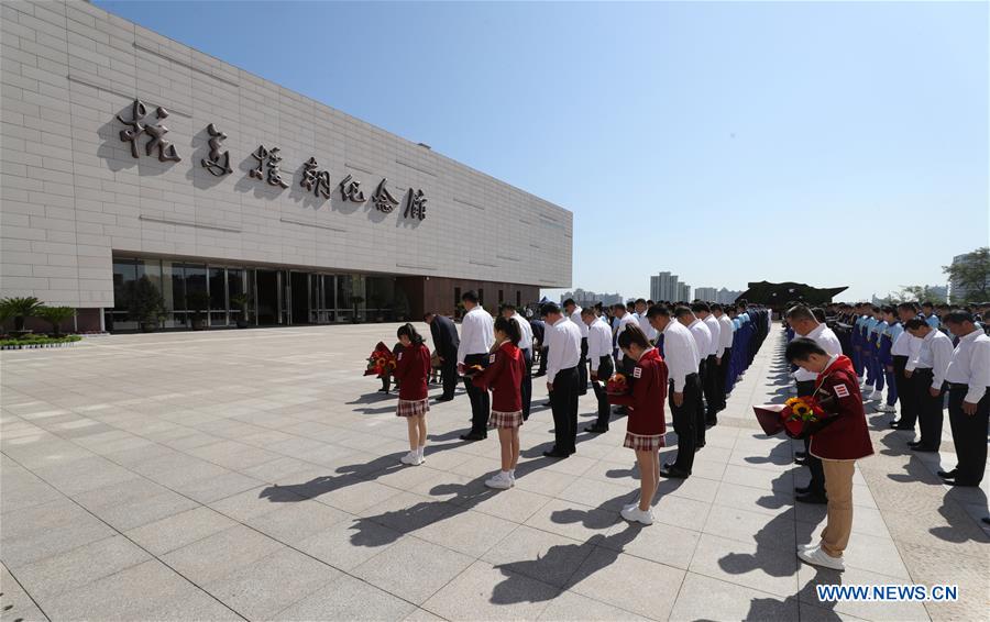 Veterans of the Chinese People's Volunteers (CPV) and representatives from all walks of life mourn in front of the Memorial Hall of the War to Resist U.S. Aggression and Aid Korea, in Dandong, northeast China's Liaoning Province, Sept. 19, 2020. A memorial hall commemorating the War to Resist U.S. Aggression and Aid Korea (1950-1953) reopened on Saturday in northeast China's Liaoning Province. The renovated and expanded Memorial Hall of the War to Resist U.S. Aggression and Aid Korea in the border city of Dandong is the only museum in China featuring an exhibition of the complete history of the participation of the Chinese People's Volunteers (CPV) in the war. Covering a total area of 182,000 square meters, it consists of an exhibition hall, a memorial tower, a national defense education park, and a panorama hall featuring a panoramic painting of 132.15 meters long and 16 meters tall, which depicts the famous battle of the Chongchon River in the war. First established in 1958 and moved to the current site in 1993, the memorial hall closed in late 2014 and has undergone massive refurbishment and expansion since then. Before it was closed, the new site had received 12 million visits. (Xinhua/Yang Qing)