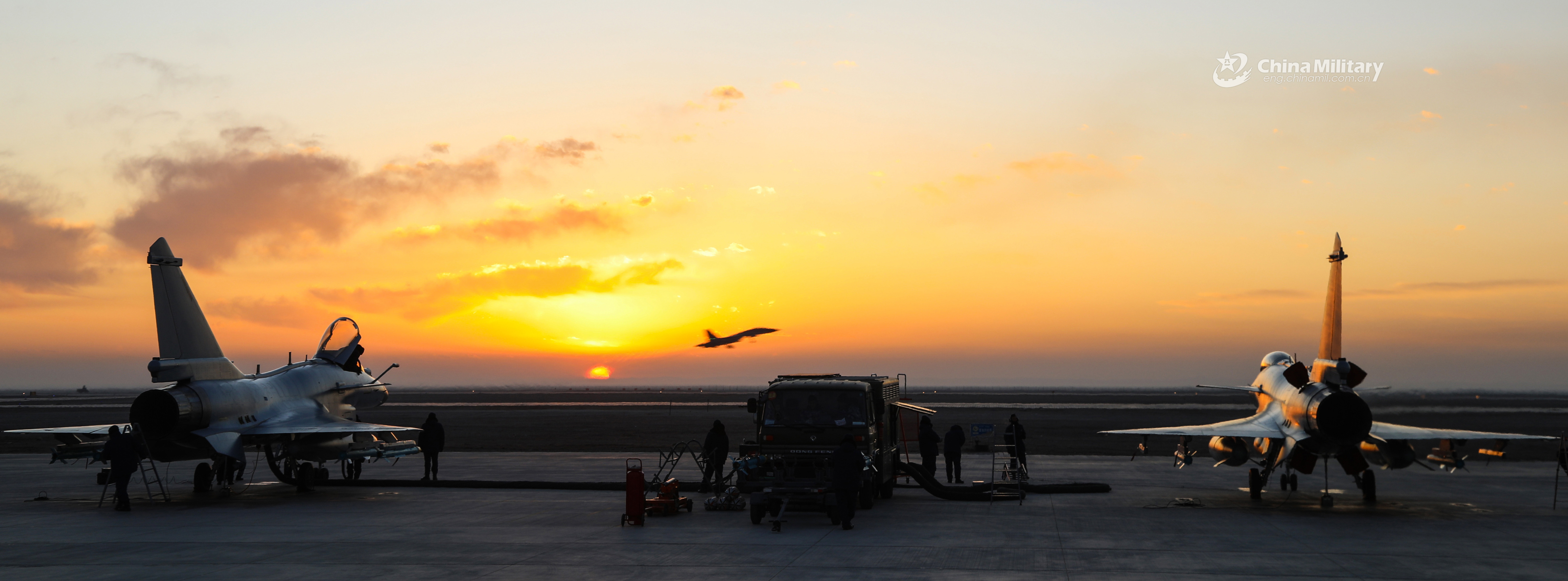 A J-10 fighter jet attached to an aviation brigade of the air force under the PLA Southern Theater Command takes off in the afterglow during a fight training exercise in late November, 2020. (eng.chinamil.com.cn/Photo by Wang Guoyun)