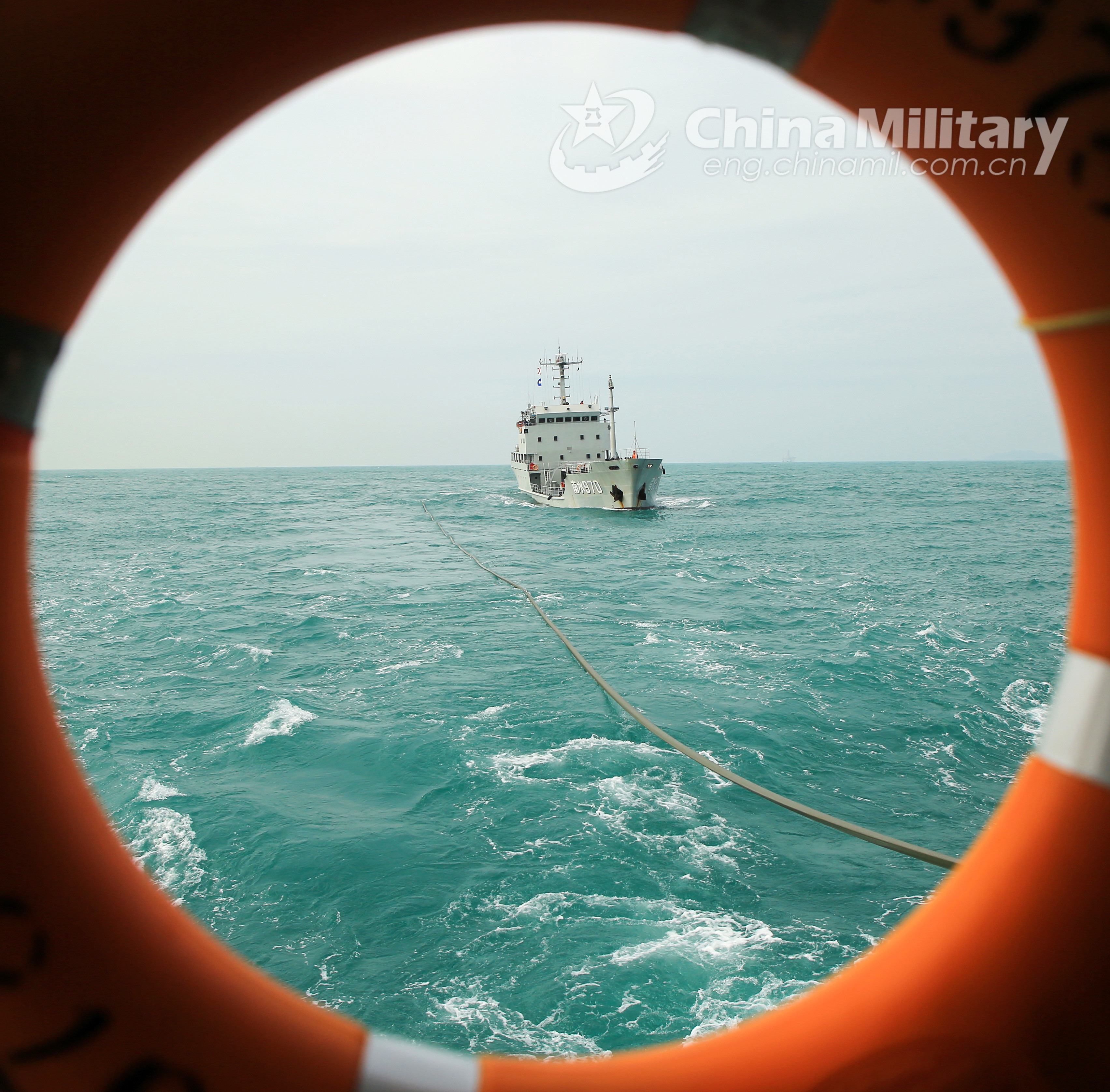 Two navy vessels attached to an auxiliary ship group under the PLA Southern Theater Command perform astern replenishment-at-sea during a maritime training exercise in waters of the South China Sea in early December, 2020. (eng.chinamil.com.cn/Photo by Wu Huanqing)
