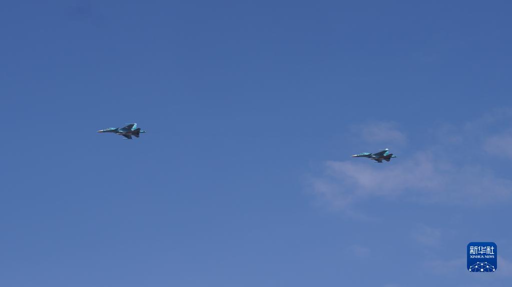 Fighter jets of the multinational joint forces soar into the sky during the main stage drill of the SCO Peace Mission-2021 joint anti-terrorism military exercise at the Donguz training range in Orenburg Oblast, Russia, on September 23, 2021. (eng.chinamil.com.cn/Photo by Mei Shixiong)