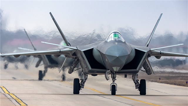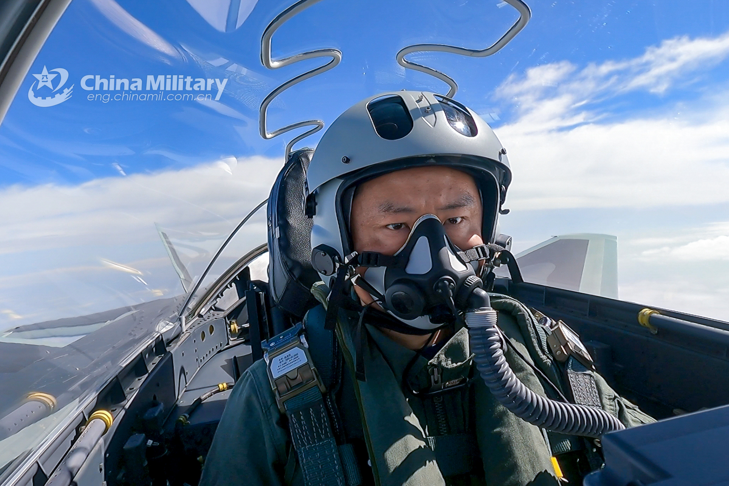 Senior Colonel Li Ling, commander of an aviation brigade under the PLA Air Force, operates his J-20 fighter jet during the air confrontation training on January 10, 2022. (eng.chinamil.com.cn/Photo by Yang Pan)