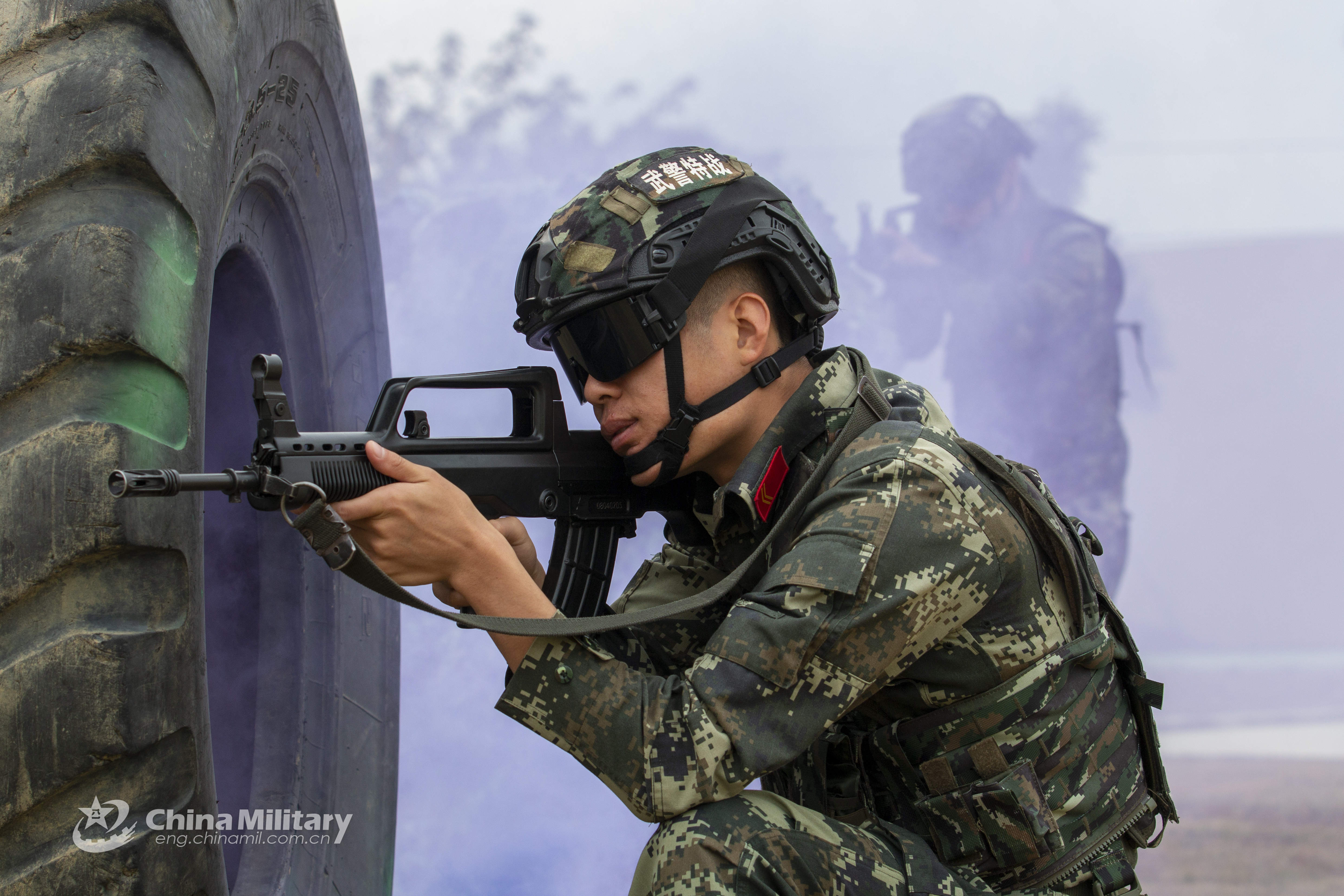 Soldiers assigned to the Beihai detachment under the People's Armed Police (PAP) Force Guangxi Corps move forward in groups with high vigilance during a multi-subject tactical coordination training exercise in South China's Guangxi Zhuang Autonomous Region on January 7, 2022. (eng.chinamil.com.cn/Photo by Yu Haiyang)