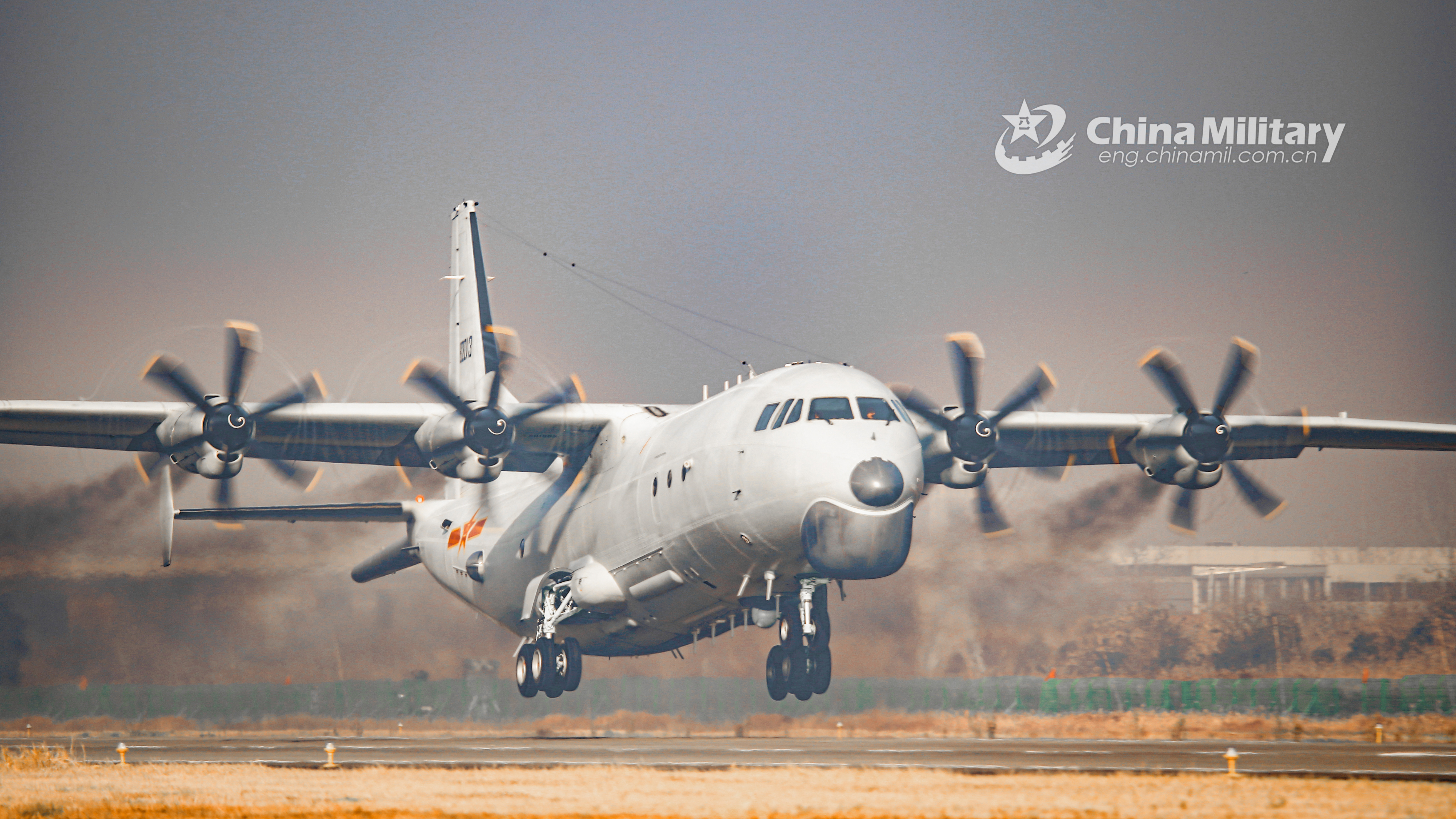An anti-submarine aircraft attached to a naval aviation division under the PLA Eastern Theater Command takes off during a combat flight training exercise in the middle of January, 2022, which is attended by multiple types of aircraft. (eng.chinamil.com.cn/Photo by Guo Yunbo, Liu Yufan, Wang Zhengdi and Zhang Dingyi)