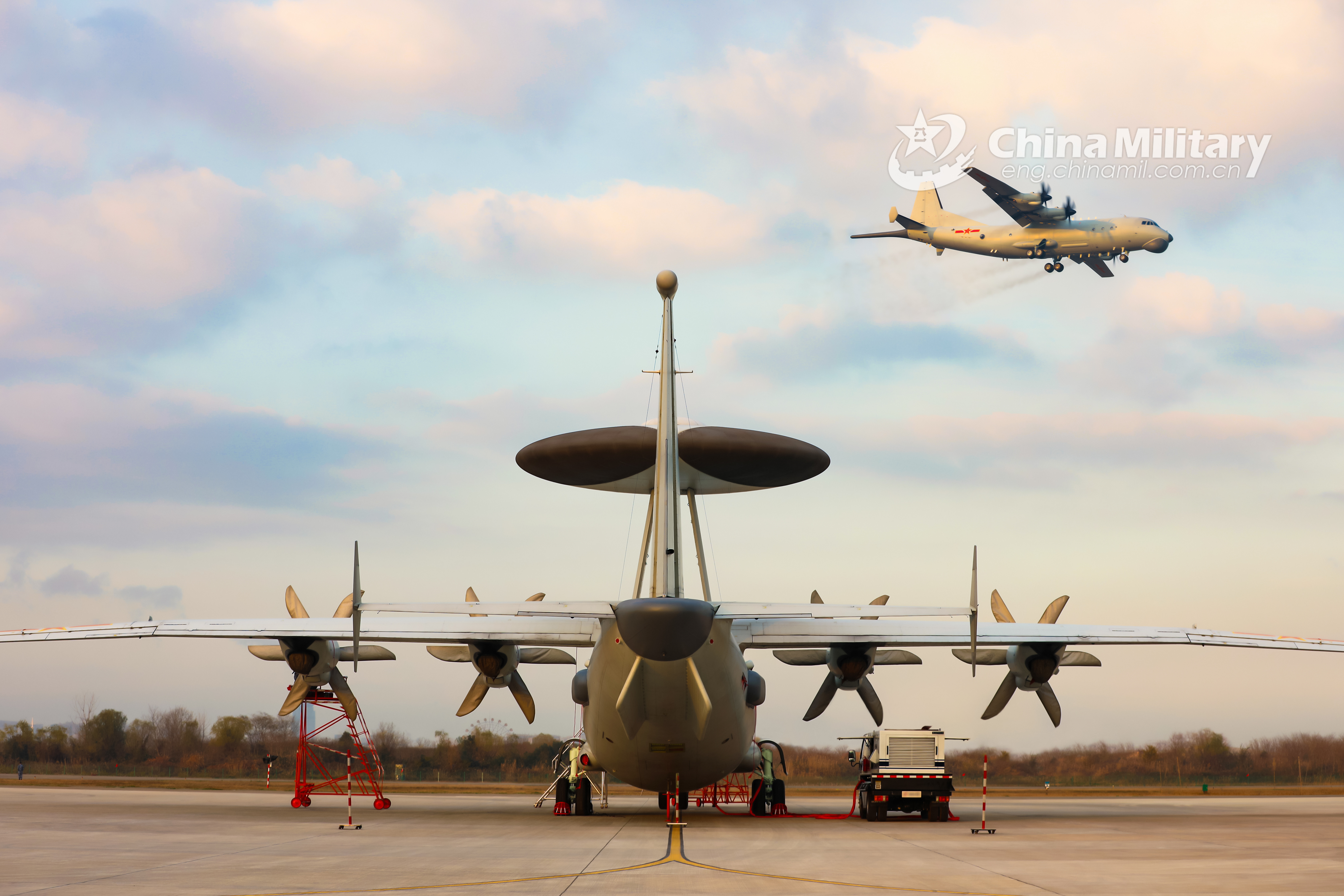 An early-warning aircraft attached to a naval aviation division under the PLA Eastern Theater Command gets inspections before a combat flight training exercise in the middle of January, 2022, which is attended by multiple types of aircraft. (eng.chinamil.com.cn/Photo by Guo Yunbo, Liu Yufan, Wang Zhengdi and Zhang Dingyi)