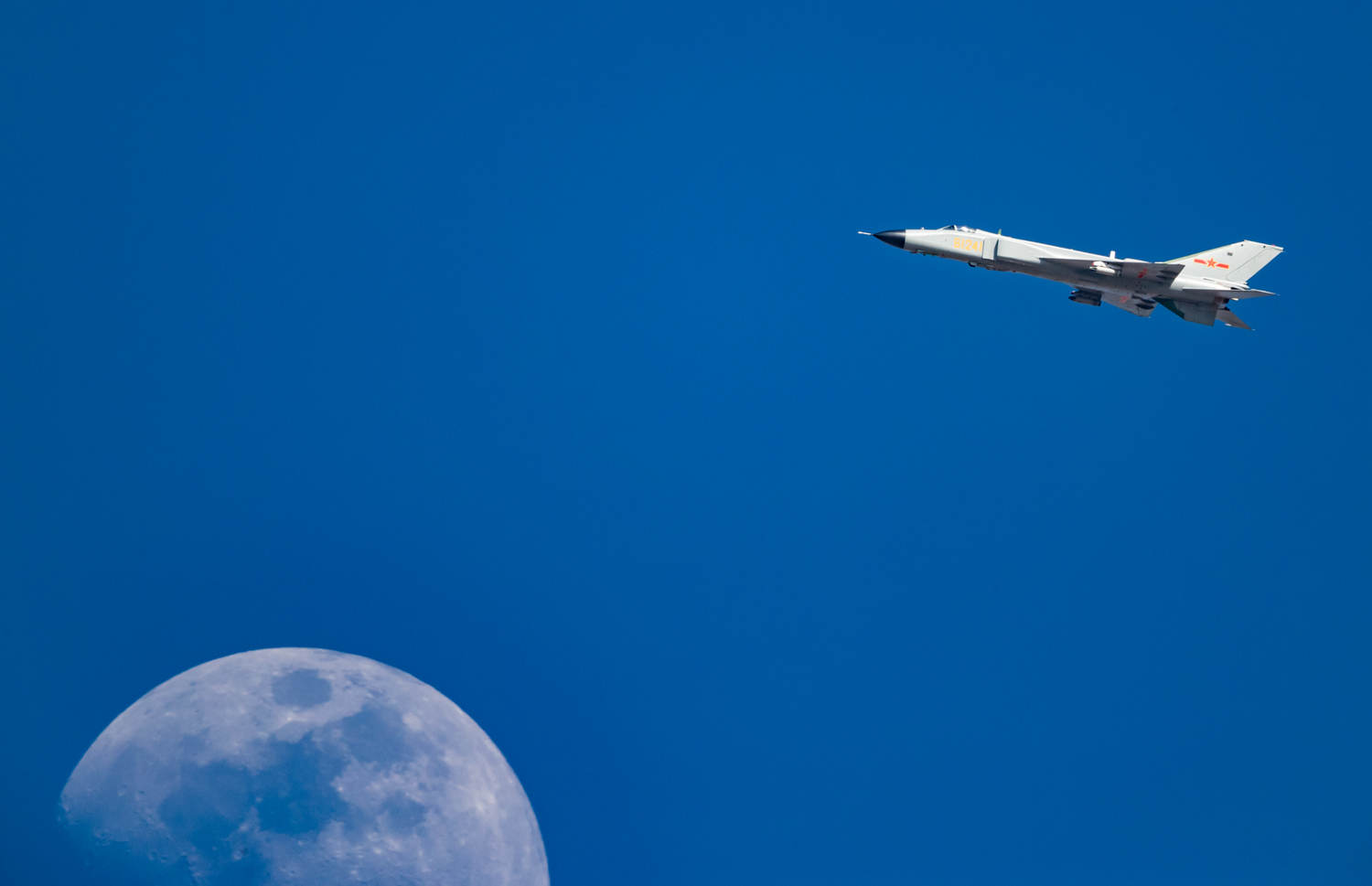 A J-8DF fighter jet flies over the sky during the Golden Dart - 2018 air combat tactics competitive assessment. The PLA Air Force kicked off its annual competitive assessment codenamed Golden Dart - 2018 in northeastern China on April 18, 2018. Over 200 pilots from dozens of Air Force's combat units competed for the "Golden Dart" award, a top prize for the best skillful pilots in the fierce air penetration and assault operations against ground air defense troops. (eng.chinamil.com.cn/Photo by Yang Pan)