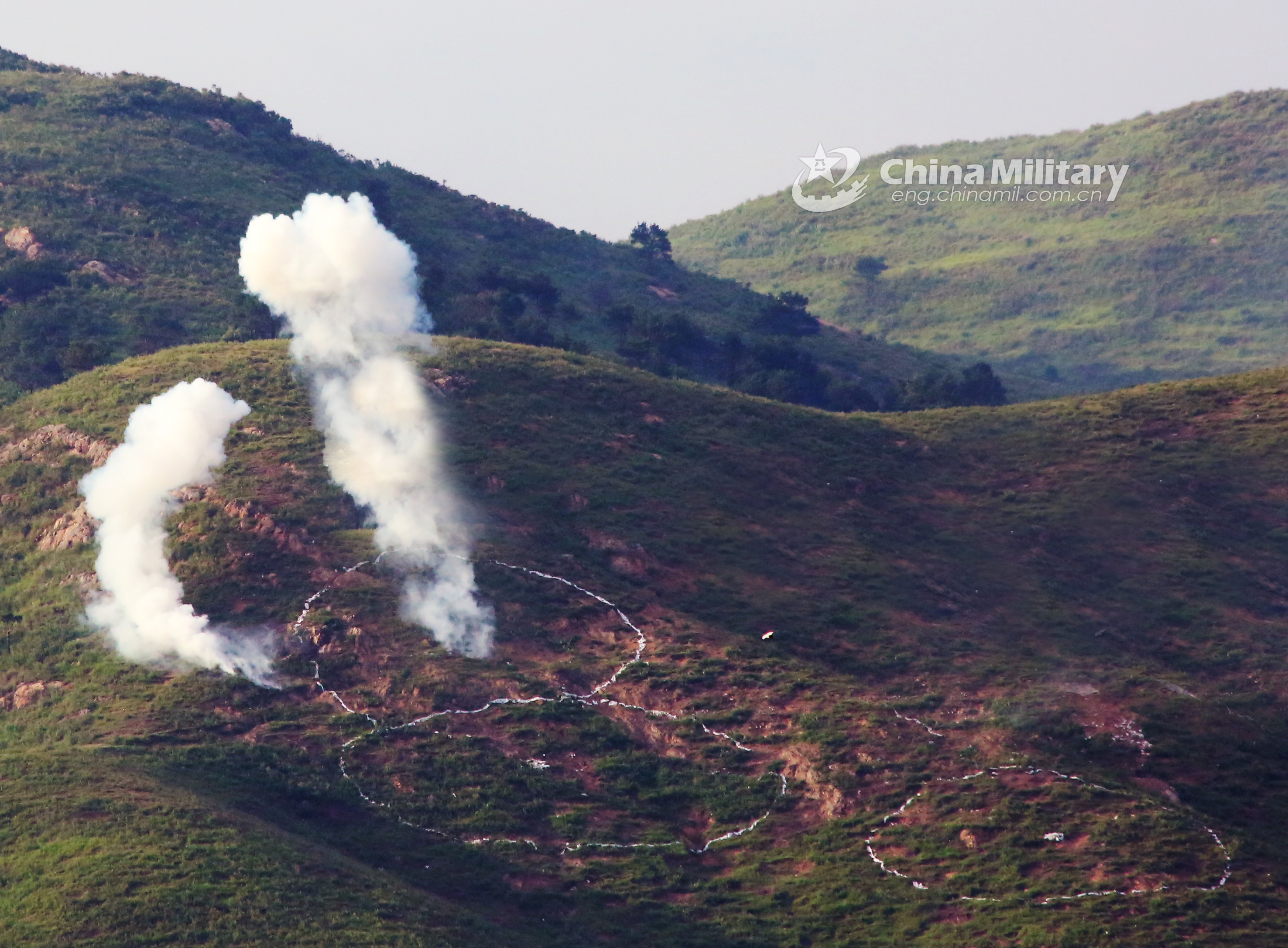 A target zone is hit by rockets during a live-fire training exercise conducted by a mechanized brigade of the airborne troops under the PLA Air Force from July 12 to 13, 2018. (eng.chinamil.com.cn/Photo by Fang Chao and He Yong)