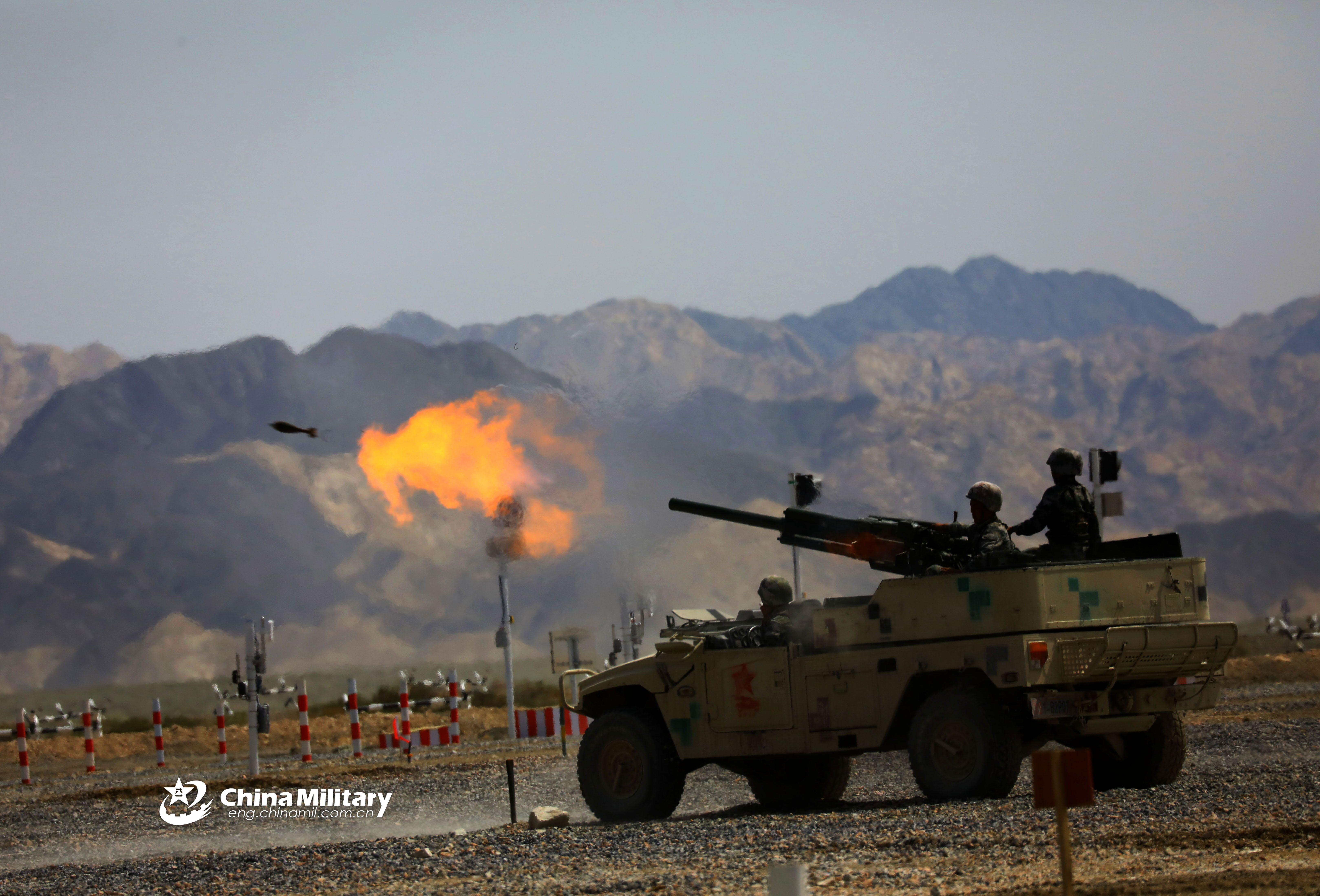 A motor system performs firing skills at the opening ceremony of the International Army Games 2018 in China. Three contests, namely the "Suvorov Attack," "Clear Sky" and "Safe Route" of the International Army Games (IAG) 2018 kicked off in northwest China's Xinjiang Uygur Autonomous Region on July 29, 2018. A total of 17 teams with 358 soldiers from 10 countries, including China, Belarus, Egypt, Kazakhstan, Russia, Venezuela and Zimbabwe, are participating the games that will conclude on Aug. 11, 2018. (eng.chinamil.com.cn/Photo by Luo Xingcang, Shu Gang and Cao Chenhe)
