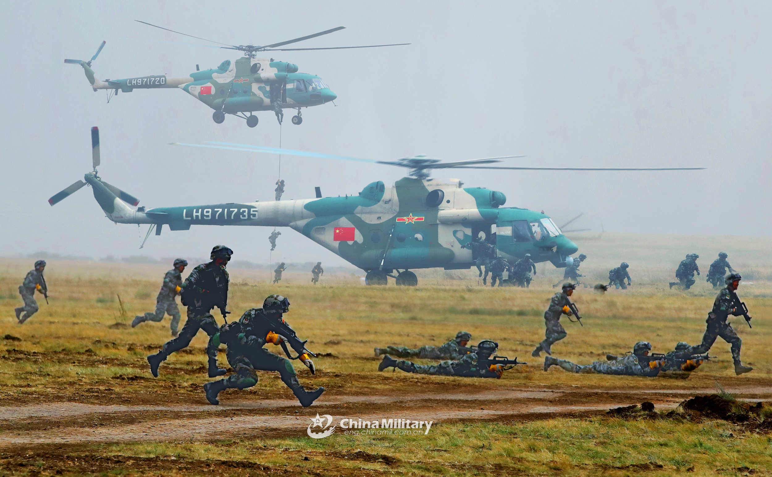 Soldiers assigned to the 76th Group Army under the PLA Western Theater Command fast-rope from Mi-171 transport helicopters during the Tsentr-2019 (Center-2019) strategic drills. The drills ran in the Orenburg Region in Russia from September 16 to 21, with 128,000 troops, 20,000 pieces of military equipment, 600 aircraft and 15 naval and supply ships involved. Contingents from India, Kazakhstan, Kyrgyzstan, China, Pakistan, Tajikistan and Uzbekistan were taking part. China sent 1,600 troops to participate. (eng.chinamil.com.cn/Photo by Luo Shunyu)