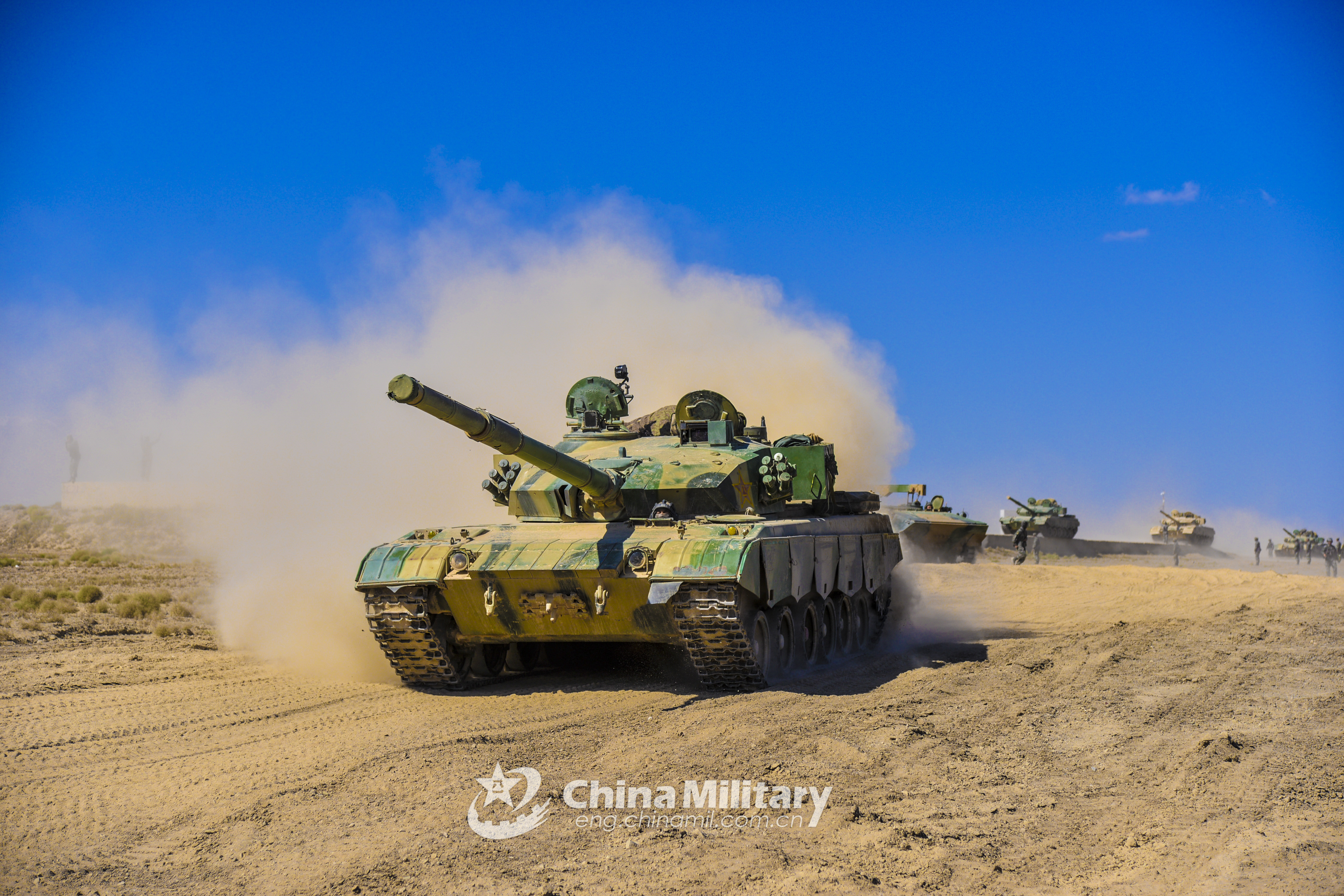 Main battle tanks attached to a combined battalion of a brigade under the PLA 76th Group Army disembark from a mock railway cart successively during a long-distance maneuver training from September 24 to 25, 2019. (eng.chinamil.com.cn/Photo by Zhu Bin)