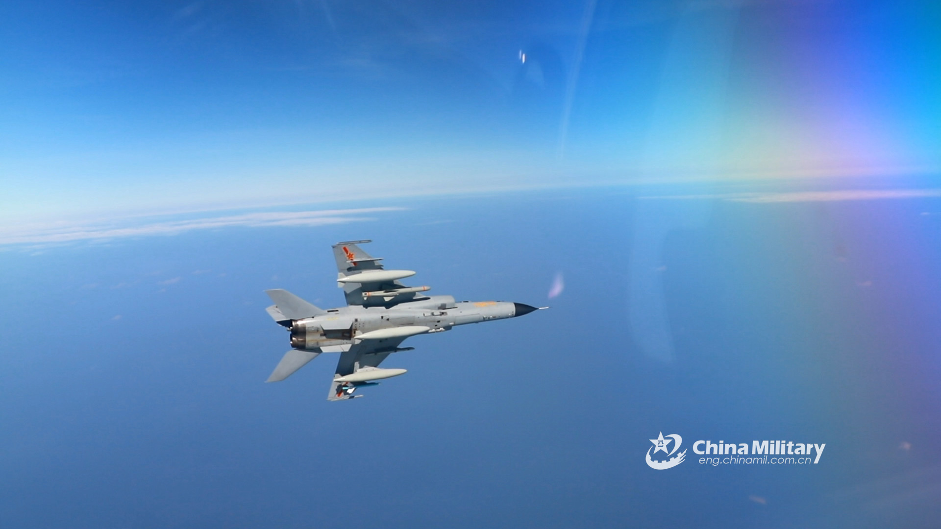 A JH-7 fighter bomber attached to an aviation brigade of the air force under the PLA Southern Theater Command soars over the sky during a recent flight training exercise. (eng.chinamil.com.cn/Photo by Wang Chen and Huang Yanzhaung)
